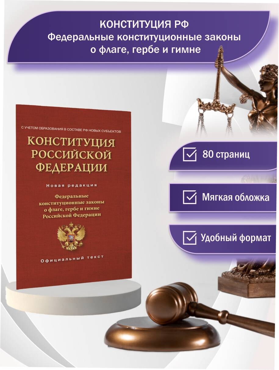 Аннотация: Конституция Российской Федерации. Федеральные конституционные законы о флаге, гербе и гимне. С учетом образования в составе РФ новых субъектов