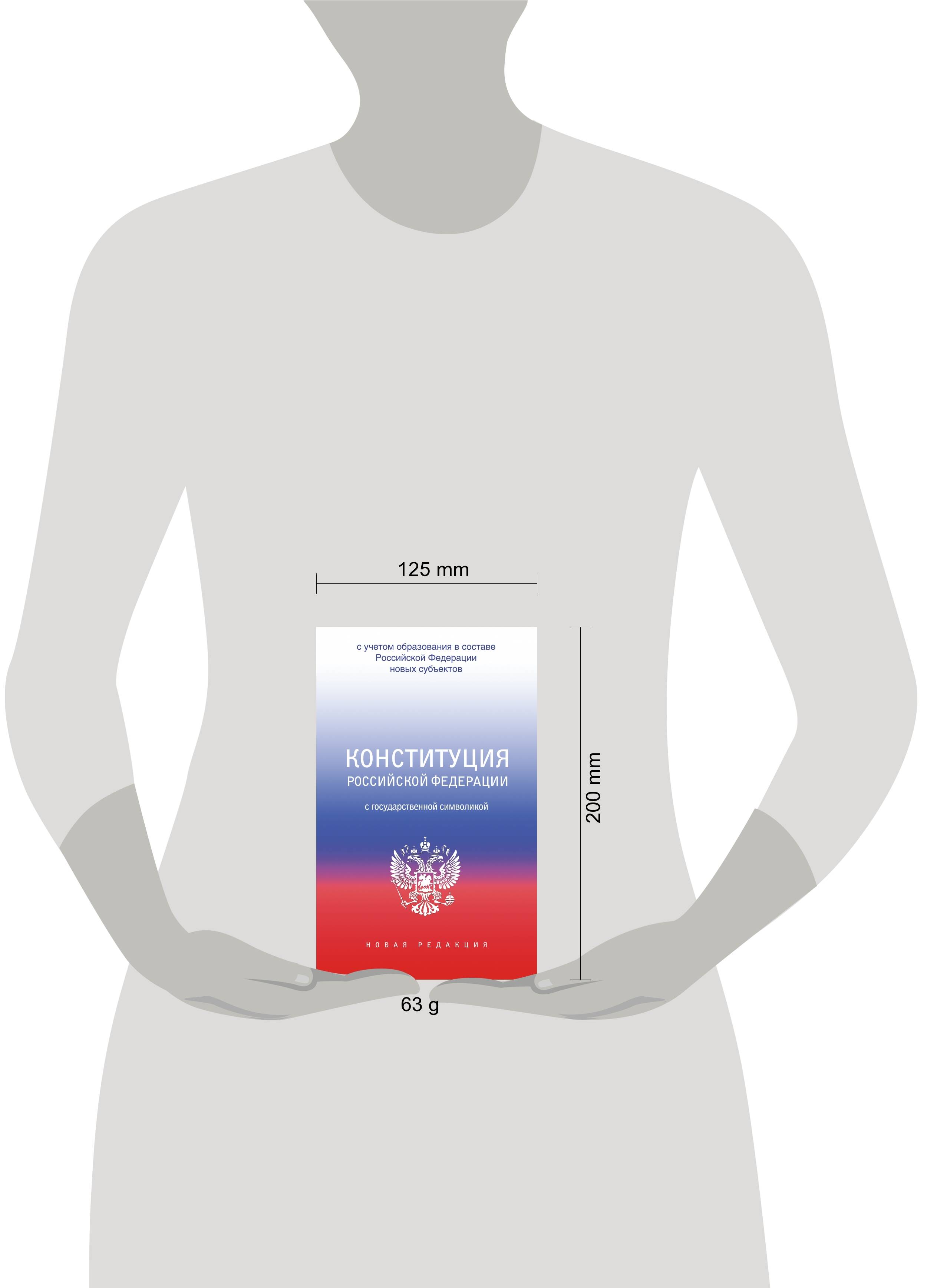 Конституция Российской Федерации в новой редакции с учетом образования в составе Российской Федерации новых субъектов: Донецкой Народной Республики, Луганской Народной Республики, Запорожской и Херсонской областей. В издании приводятся Федеральные конституционные законы о флаге, гербе и гимне, которые устанавливают их описание и порядок официального использования.| Издательство | ИЗДАТЕЛЬСТВО "АСТ" |