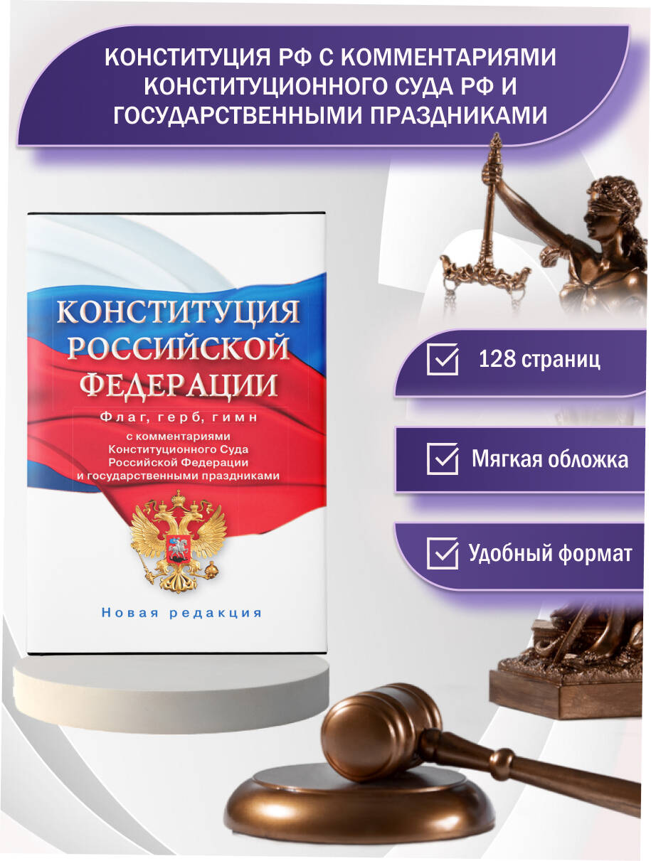 Аннотация: Конституция Российской Федерации с комментариями Конституционного суда РФ и государственными праздниками. Флаг, герб, гимн