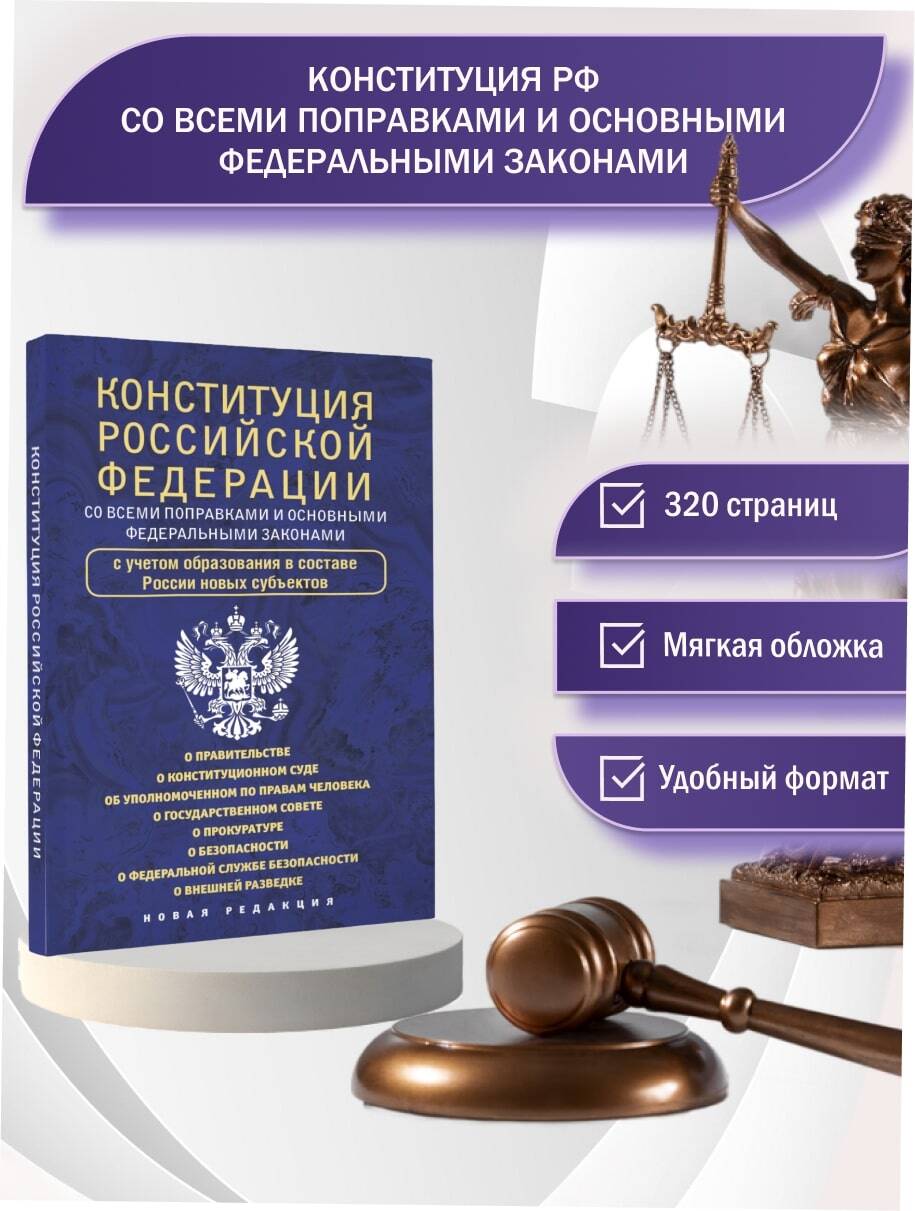 Конституция Российской Федерации с учетом образования в составе России новых субъектов: Донецкой Народной Республики, Луганской Народной Республики, Запорожской и Херсонской областей. В издание включены законы, определяющие основные направления государственной деятельности и обеспечивающие функционирование государственных органов: - ФКЗ "О Правительстве Российской Федерации"; - ФКЗ "О Конституционном Суде Российской Федерации"; - ФКЗ "Об Уполномоченном по правам человека в Российской Федерации"; - ФЗ "О Государственном Совете Российской Федерации"; - ФЗ "О прокуратуре Российской Федерации"; - ФЗ "О безопасности"; - ФЗ "О федеральной службе безопасности"; - ФЗ "О внешней разведке". Для специалистов, госслужащих и студентов юридических факультетов.| Издательство | ИЗДАТЕЛЬСТВО "АСТ" |