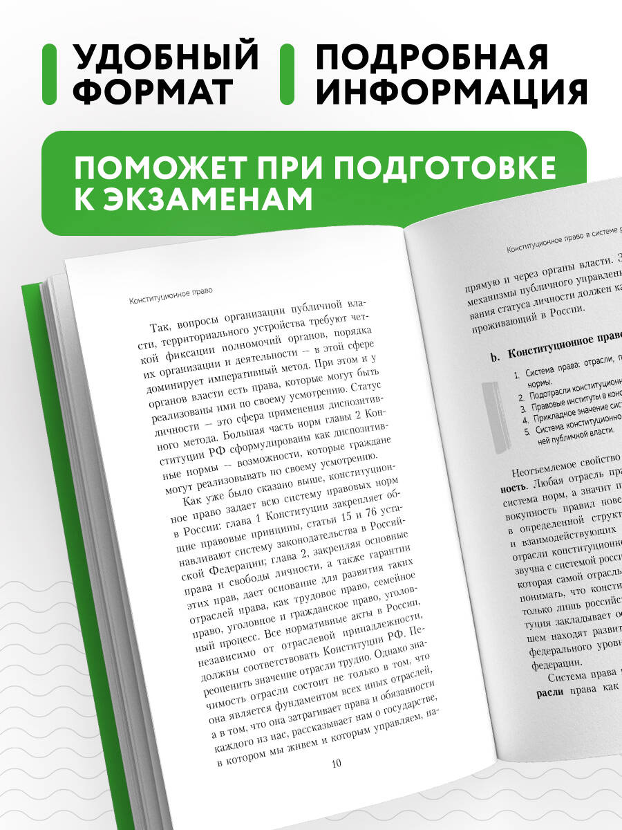 Эта книга - курс российского конституционного права, изложенный в краткой и понятной форме. Содержание курса соответствует темам, предлагаемым ФГОС высшего образования. Понятный язык и четкая структура книги позволят быстро и эффективно освоить материал, эффективно подготовиться к экзамену и зачету. Читатели, которые хотят полнее освоить конституционное право и его механизмы, найдут здесь рекомендации по учебной литературе и ресурсам для дальнейшего изучения. Евгения Викторовна КУЗНЕЦОВА - кандидат юридических наук, руководитель образовательной программы «Правовое обеспечение национальной безопасности» УрФУ, преподаватель Уральского федерального университета и Уральского государственного юридического университета, эксперт в области публичного права.| Издательство | ООО "Издательство "Эксмо" |