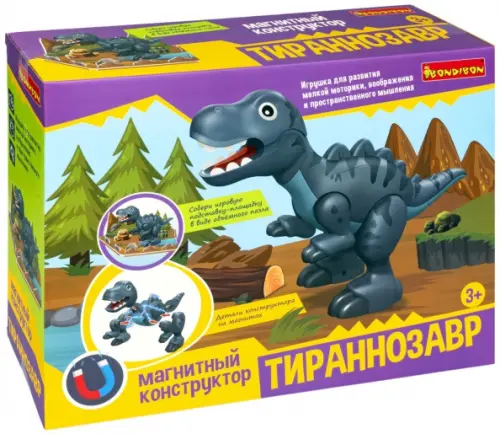 Развивающий магнитный конструктор Тираннозавр от Bondibon создан для конструирования доисторических животных.