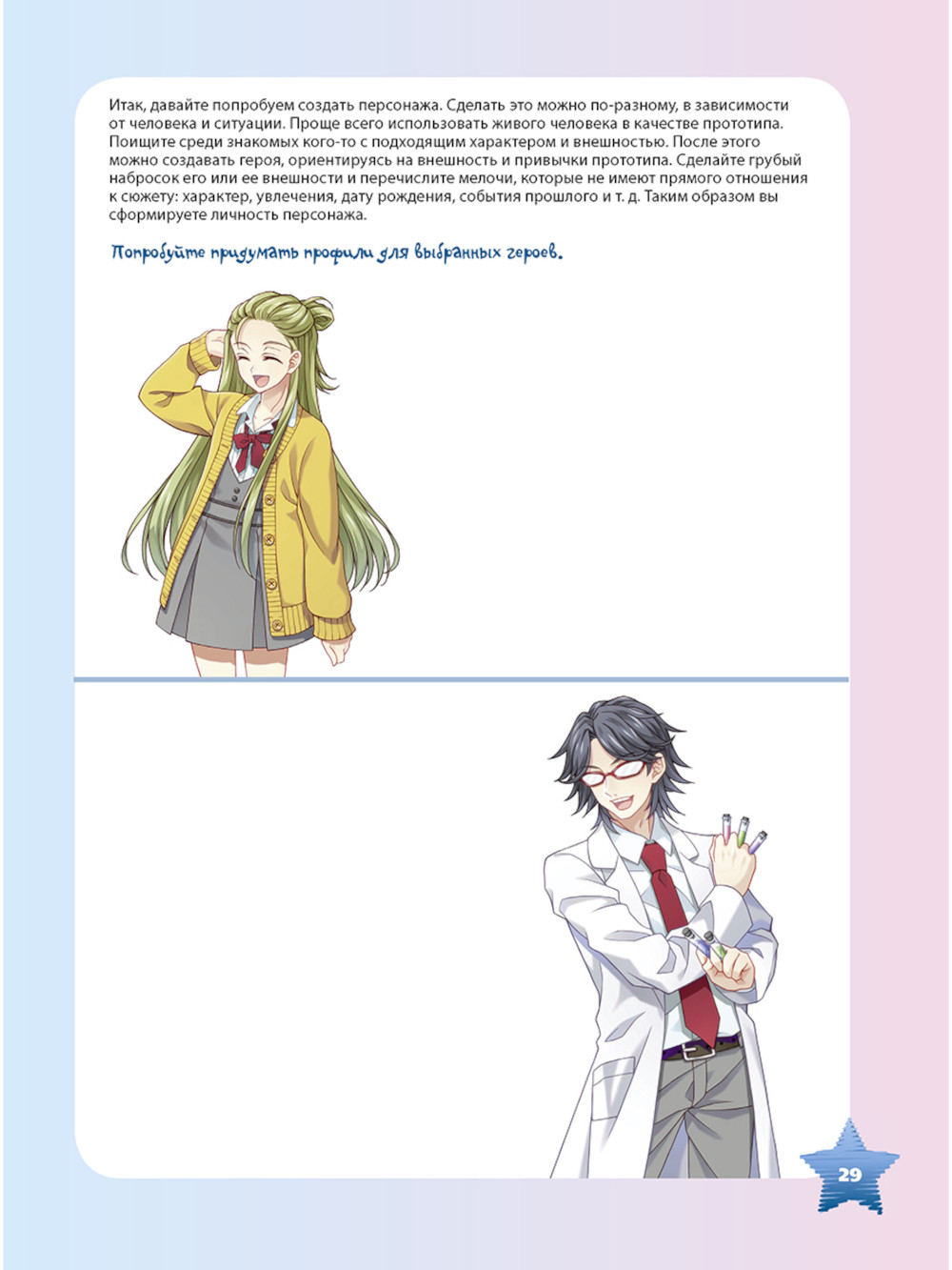 Не жизнь, а сплошная манга! А почему бы и нет? Скетчбук для начинающих мангак станет отличным помощником на пути к созданию своей истории. Расскажем о манге: - от идеи до финальной раскадровки; - будем рисовать героев вместе - шаблоны и советы в помощь; - продумаем внешность и характер персонажей вашей будущей манги; - проведем вас к реализации ваших идей - ваши истории, наброски и раскадровка. Расскажите нам свою историю! Специально для этого мы оставили на последних страницах этого пособия незаполненные шаблоны. Вам понадобится только вдохновение!