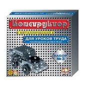 Металлический конструктор №3 для уроков труда. Состав набора: пластина 20 х 20 - 2 шт., пластина 40 х 20 - 4 шт., пластина 50 х 20 - 7 шт.; планка с 2 отверстиями - 10 шт., планка с 3 отверстиями - 4 шт., планка с 5 отверстиями - 6 шт., планка с 10 отверстиями - 6 шт., планка с 15 отверстиями - 6 шт., планка сегментная - 2 шт.; косынка I - 7 шт., косынка II - 7 шт., косынка III - 4 шт.; уголок I - 20 шт., уголок II - 2 шт.; скоба малая - 5 шт., скоба большая - 4 шт., скоба I - 3 шт., скоба II - 4 шт.; панель - 4 шт.; отвёртка - 1 шт.; ключ гаечный - 1 шт.; ось - 3 шт.; винт М 4 х 6 - 60 шт., винт М 4 х 8 - 20 шт., винт М 4 х 20 - 6 шт.; гайка М4 - 90 шт.; планшайба - 4 шт.; колесо - 6 шт.; шкив - 3 шт.; крюк - 1 шт.; инструкция. Всего - 292 элемента. Материалы: металл и пластика. Доступны к сборке 5 моделей: 2 вида автомобиля, самолёт, коляску и кран. Детали имеют размер от 2 до 15 см, толщина металла составляет 0,8 мм. Расстояние между центрами отверстий - 10 мм. Крепёж имеет резьбу М4.| Серия | Конструктор детский (без серии) |