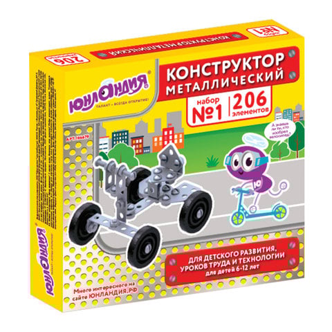 Конструктор металлический "Юнландия. Для уроков труда №1", развивающий, 206 элементов