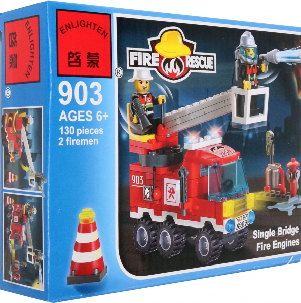 Конструктор Пожарная машина, 130 деталей, 2 фигурки
