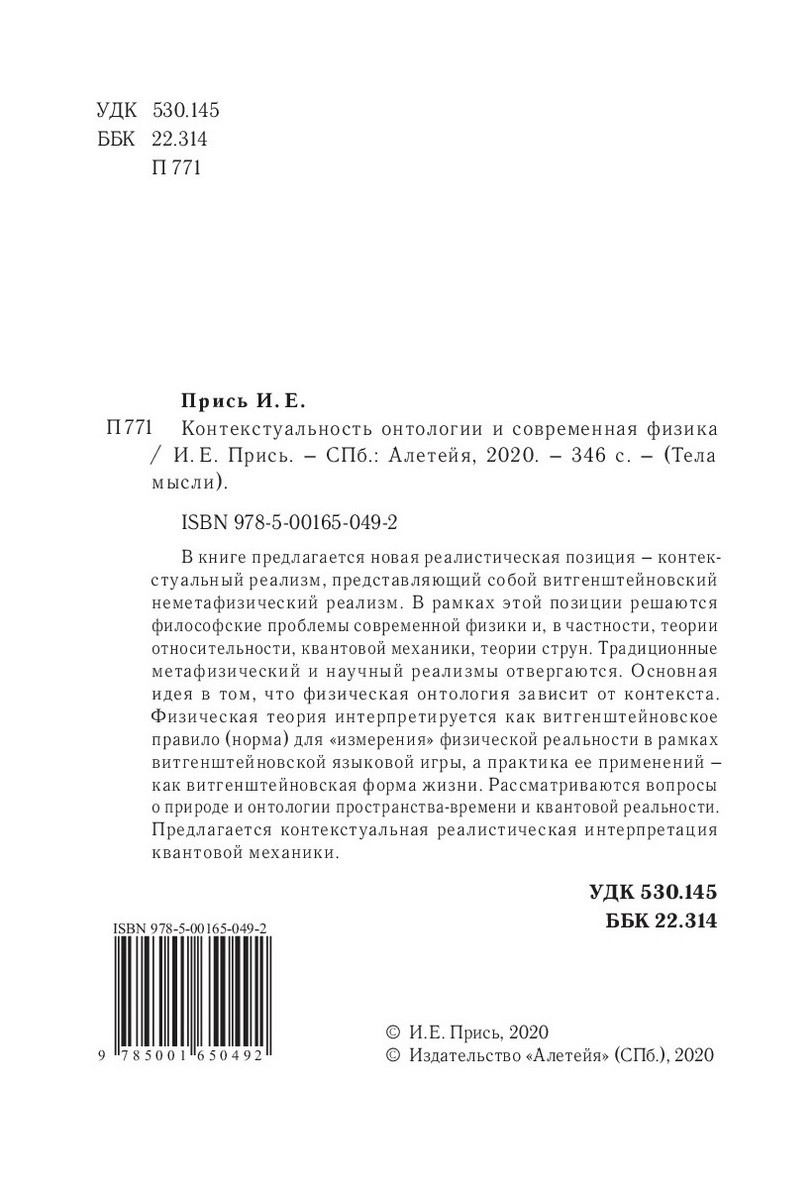 Контекстуальность онтологии и современная физика| Автор/составитель | Прись И. |