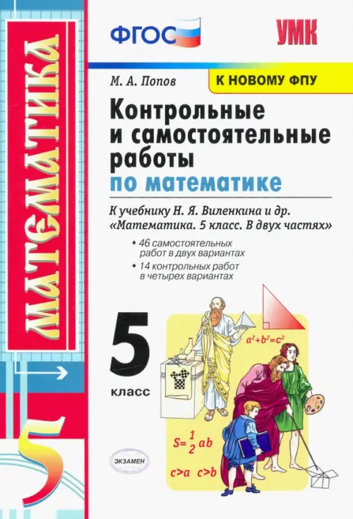 Данное пособие полностью соответствует федеральному государственному образовательному стандарту (второго поколения). Пособие является необходимым дополнением к школьному учебнику Н.Я. Виленкина и др. "Математика. 5 класс", рекомендованному Министерством просвещения Российской Федерации и включенному в Федеральный перечень учебников. Пособие включает материалы для контроля и оценки качества подготовки учащихся по математике. Представлено 46 самостоятельных работ, каждая в двух вариантах, так что при необходимости можно проверить полноту знаний учащихся после каждой пройденной темы. 14 контрольных работ, представленных в четырех вариантах, дают возможность максимально точно оценить знания каждого ученика. Пособие адресовано учителям, будет полезно учащимся при подготовке к урокам, контрольным и самостоятельным работам.