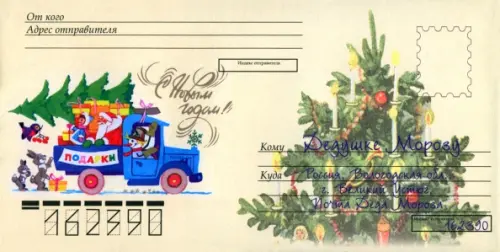 Великолепный почтовый конверт Дедушке Морозу с повышенной плотностью 120 г/м2