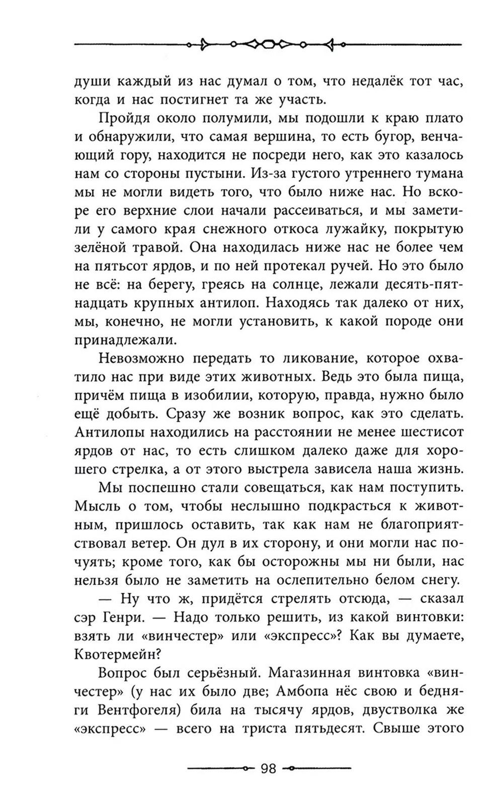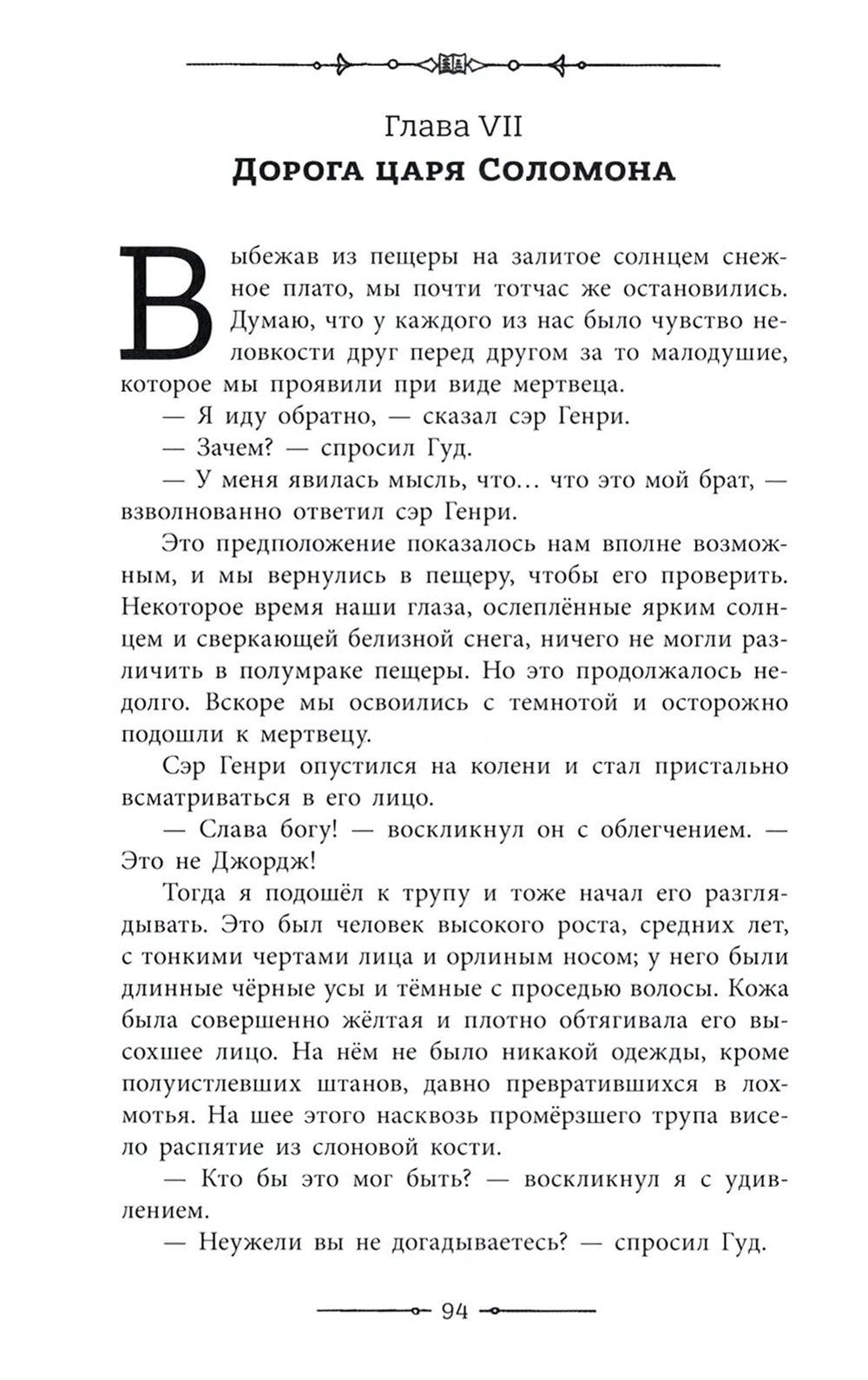 Аллан Квотермейн, уважаемый на юге Африки охотник на слонов, встречает двух джентльменов на пароходе, следующем из Кейптауна в Дурбан. Один из них, Генри Куртис, очень рад этой встрече - ведь Квотермейн знаком с его младшим братом Джорджем, который пропал где-то на пути к сокровищнице царя Соломона. Куртис предлагает охотнику присоединиться к поискам Джорджа и сулит ему несметные богатства. Аллан Квотермейн нехотя соглашается на это рискованное предприятие - ведь он как никто другой знает, что у них немного шансов вернуться живыми.| Издательство | Изд. Лабиринт Пресс |