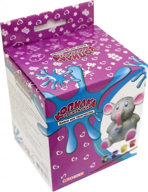 В комплекте: белая копилка, краски 4 цветов, кисточка.