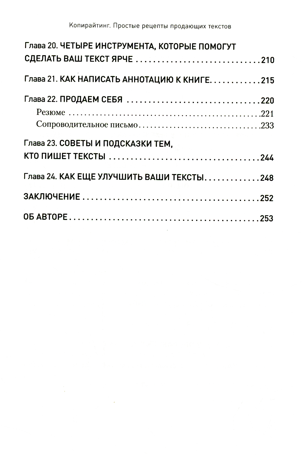 Автор подробно рассматривает структуру основных текстов, разбирает типичные ошибки составителей, дает основные правила написания эффективных документов. Также вы найдете уникальный набор приемов, которые при необходимости помогут усилить эффект, а значит и существенно улучшить результаты работы, увеличить продажи, повысить конверсию.