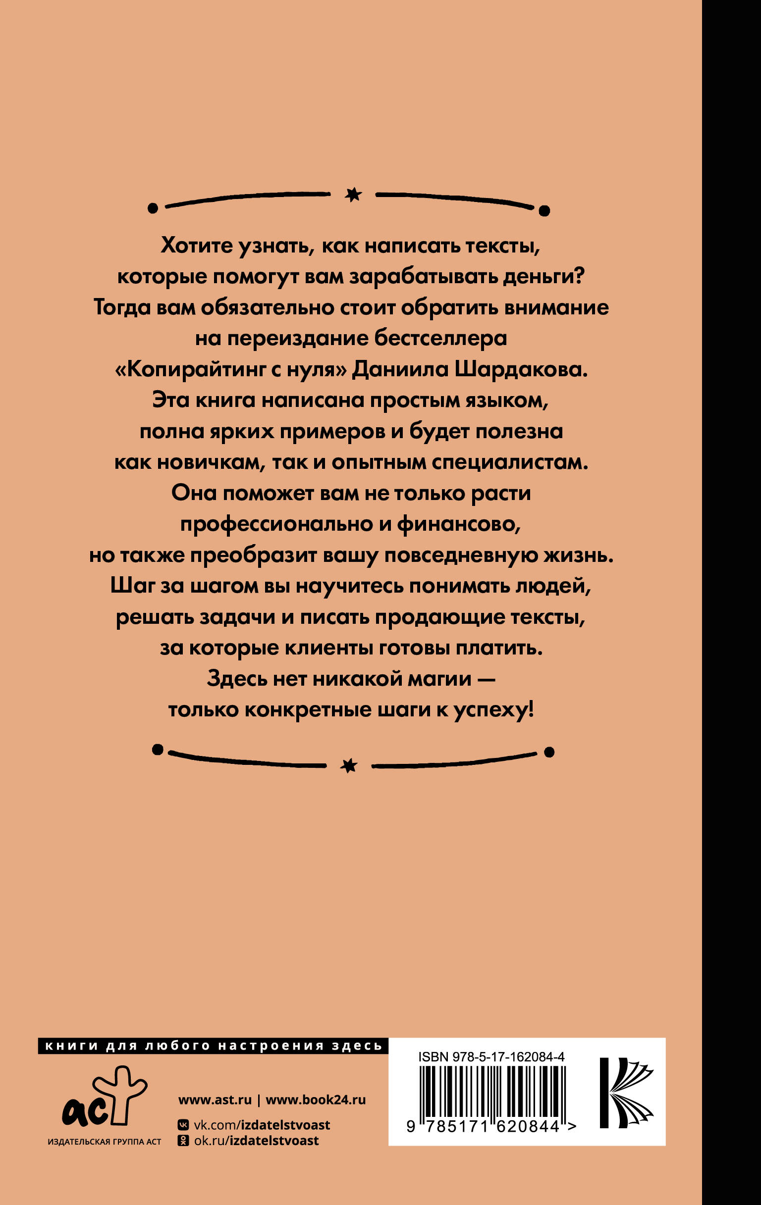 Хотите узнать, как написать тексты, которые помогут вам зарабатывать деньги? Тогда вам обязательно стоит обратить внимание на переиздание бестселлера "Копирайтинг с нуля" Даниила Шардакова. Эта книга написана простым языком, полна ярких примеров и будет полезна как новичкам, так и опытным специалистам. Она поможет вам не только расти профессионально и финансово, но также преобразит вашу повседневную жизнь. Шаг за шагом вы научитесь понимать людей, решать задачи и писать продающие тексты, за которые клиенты готовы платить. Здесь нет никакой магии - только конкретные шаги к успеху!| Издательство | Издательство "АСТ" |