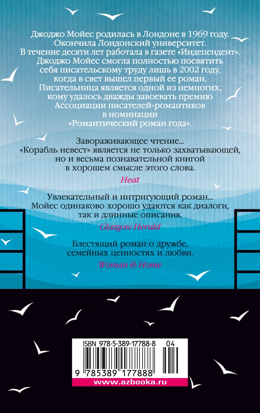1946 год. Авианосцу военно-морского флота Великобритании «Виктория» предстоит очень долгий и трудный путь из Австралии в Англии. На его борту моряки и летчики, выдержавшие тяжелые испытания в годы войны. Но «Викторию», как будто позабыв о его славном боевом прошлом, называют «Кораблем невест». Ведь на нем к своим мужьям, с которыми их в трудные годы соединила судьба, плывут 650 женщин. И среди них Фрэнсис Маккензи. Она стремится убежать от своего прошлого, но оно преследует ее за тысячи миль от дома, и внезапно понимает, что зачастую путешествовать гораздо важнее, чем прибыть в пункт назначения… Книги Джоджо Мойес переведены на многие языки мира, регулярно входят в список бестселлеров «Нью-Йорк таймс», а права на их экранизацию покупают ведущие киностудии Голливуда.| Издательство | Иностранка |
