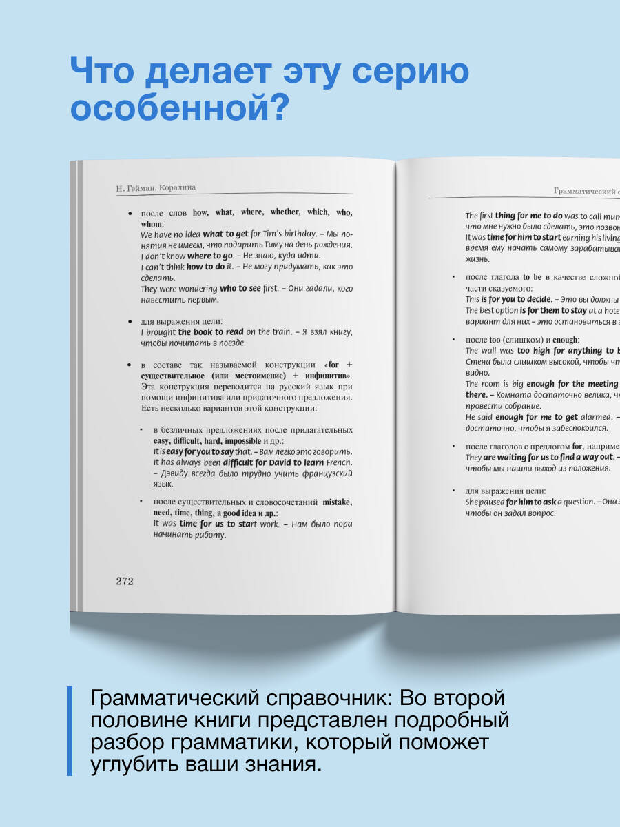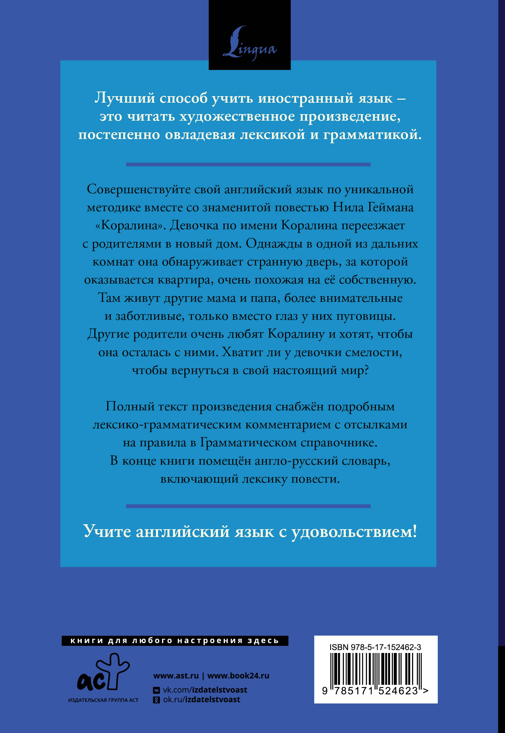 Читайте и учите английский язык вместе с АСТ nonfiction! «Коралина» - трогательная повесть, в которой поднимаются очень важные вопросы: о родительстве, любви, заботе и многом другом. Параллельные тексту лексико-грамматические комментарии помогут осваивать новые правила английского языка в процессе чтения.| Издательство | ИЗДАТЕЛЬСТВО "АСТ" |