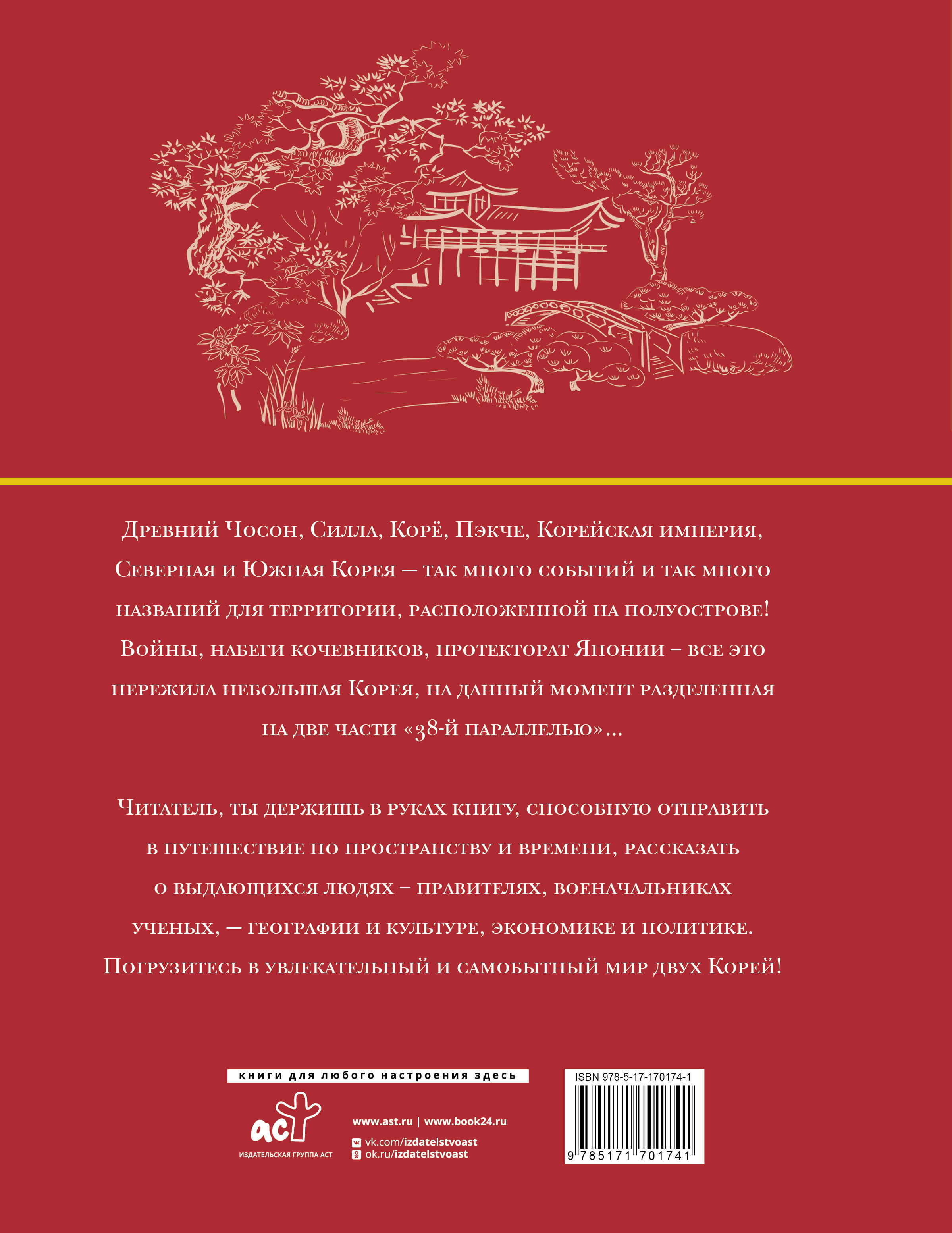 Древний Чосон, Силла, Корё, Пэкче, Корейская империя, Северная и Южная Кореи - так много событий и так много названий для территории, расположенной на полуострове! Войны, набеги кочевников, протекторат Японии - все это пережила небольшая Корея, на данный момент разделенная на две части "38-й параллелью"… Читатель, ты держишь в руках книгу, способную отправить в путешествие по пространству и времени, рассказать о выдающихся людях - правителях, военачальниках, ученых, - географии и культуре, экономике и политике. Погрузитесь в увлекательный и самобытный мир двух Корей!