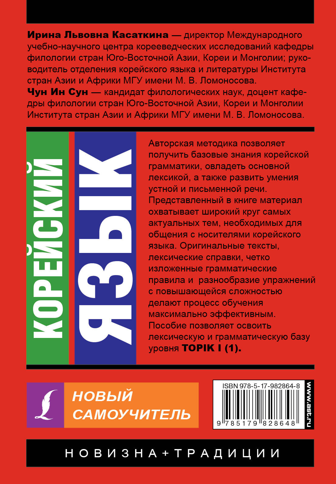 Данный самоучитель дает возможность освоить корейский язык на уровне TOPIK I. Он состоит из 30 уроков, каждый из которых содержит необходимый набор лексики по теме и основной грамматический материал с пояснениями, которые затем отрабатываются с помощью упражнений, диалогов и небольших текстов для чтения и/или перевода. Все тексты сопровождаются словарем и лексико-грамматическими комментариями, а в конце книги для удобства самостоятельной работы помещены ключи ко всем письменным упражнениям курса. Кроме того, уроки 1-8 представляют собой вводный курс, в котором особое внимание уделено правилам чтения и корейскому письму хангыль. Данное издание предназначено для читателей, начинающих изучать корейский язык самостоятельно и нацеленных на качественное овладение языком, а также для студентов высших языковых и неязыковых учебных заведений, изучающих корейский язык.| Издательство | ИЗДАТЕЛЬСТВО "АСТ" |