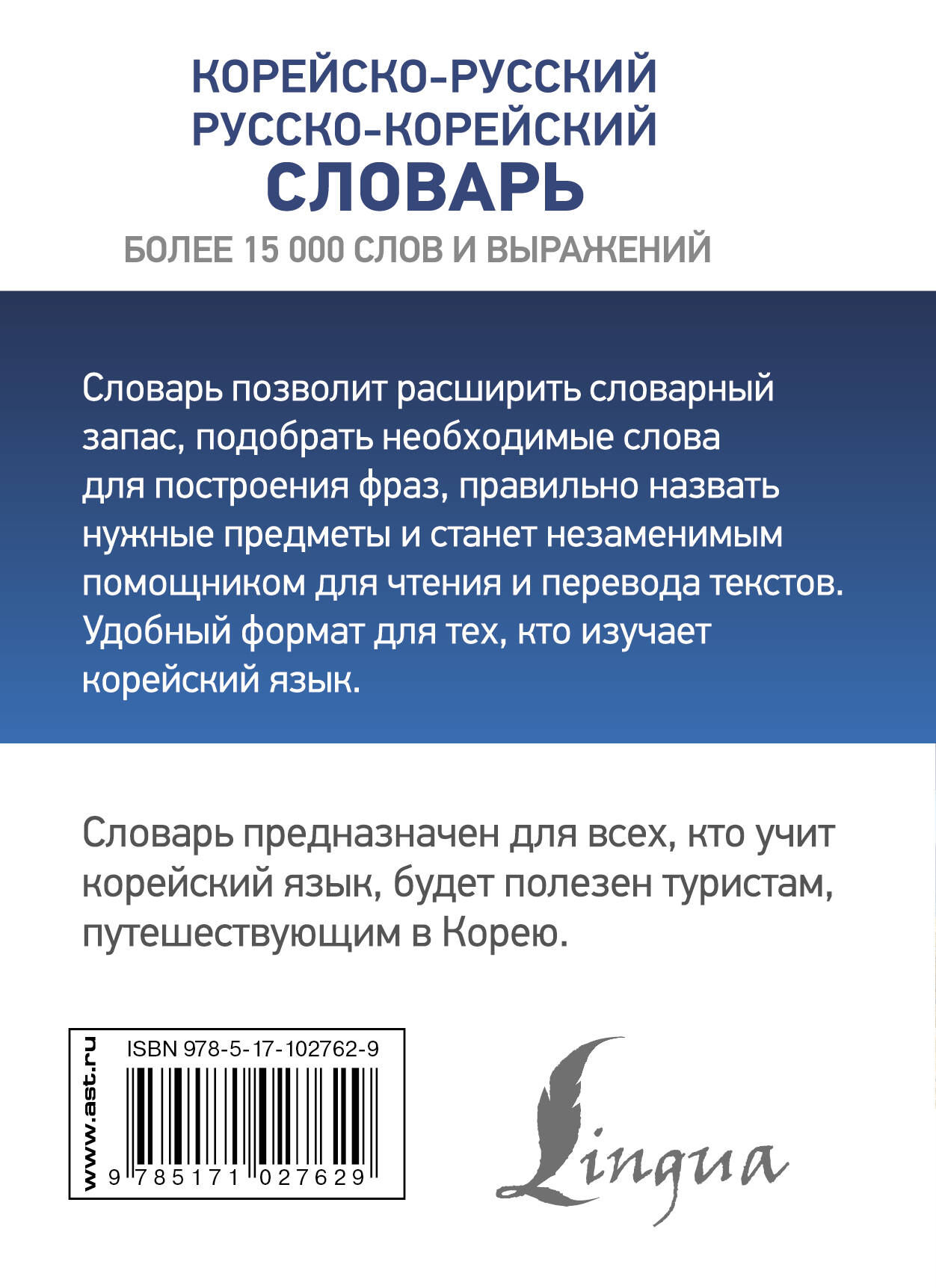 Более 15 000 слов и выражений! Словарь позволит расширить словарный запас, подобрать необходимые слова для построения фраз, правильно назвать нужные предметы и станет незаменимым помощником для чтения и перевода текстов. Словарь предназначен для всех, кто учит корейский язык, будет полезен туристам, путешествующим в Корею. Удобный формат для тех, кто изучает корейский язык.| Издательство | ИЗДАТЕЛЬСТВО "АСТ" |