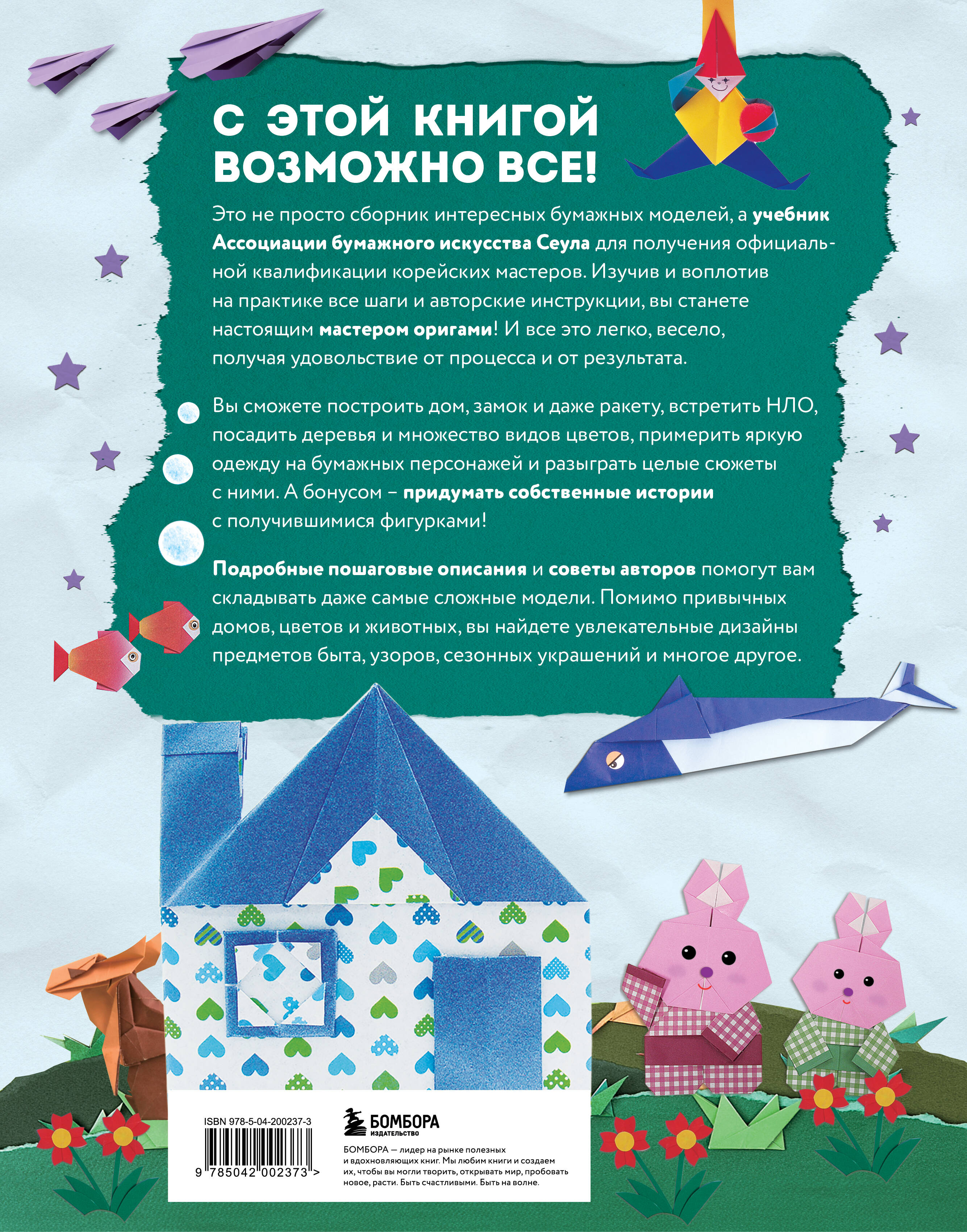 С этой книгой возможно все! Это не просто сборник интересных бумажных моделей, а учебник Ассоциации бумажного искусства Сеула для получения официальной квалификации корейских мастеров. Изучив и воплотив на практике все шаги и авторские инструкции, вы станете настоящим мастером оригами! И все это легко, весело, получая удовольствие от процесса и от результата. Построить дом, замок и даже ракету, встретить НЛО, посадить деревья и множество видов цветов, примерить яркую одежду на бумажных персонажей и разыграть целые сюжеты с ними. А бонусом - придумать собственные истории с получившимися фигурками! Подробные пошаговые описания и советы авторов помогут вам складывать даже самые сложные модели. Помимо привычных домов, цветов и животных, вы найдете увлекательные дизайны предметов быта, узоров, сезонных украшений и многое другое. В книге: • Более 200 моделей разного уровня сложности, включая модульное оригами. • 7 тематических разделов. • Приемы складывания и пошаговые иллюстрированные инструкции для каждой модели. • Широкий выбор тем, от кукол до предметов быта. С большой коллекцией моделей вы освоите искусство оригами и сложите собственный мир, полный красок и чудес!| Издательство | ООО "Издательство "Эксмо" |