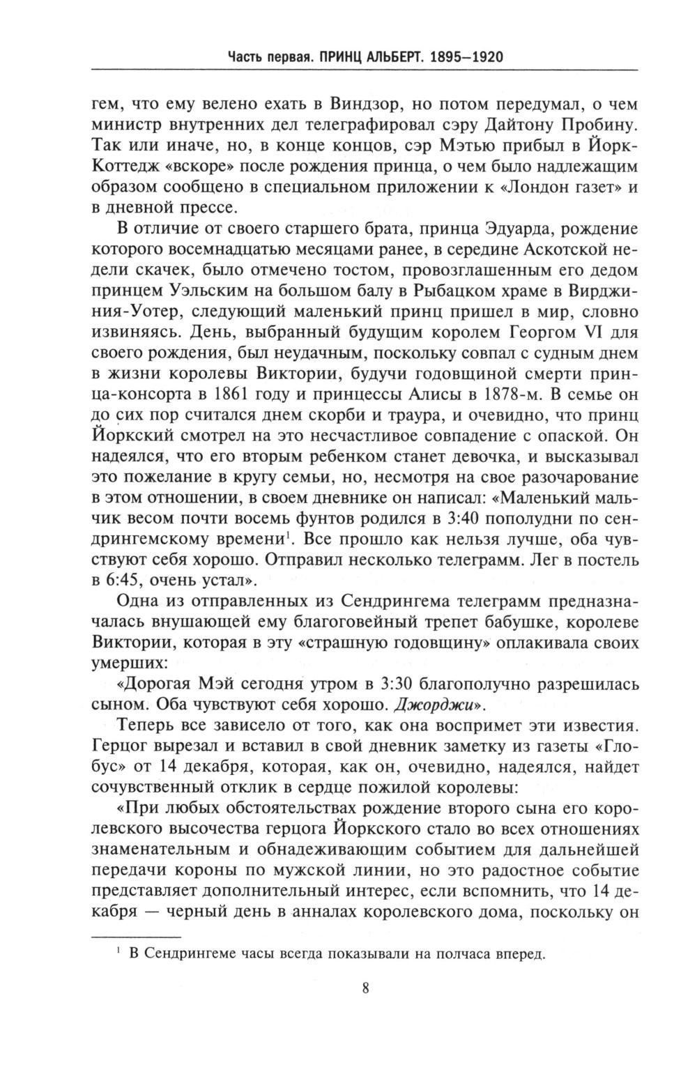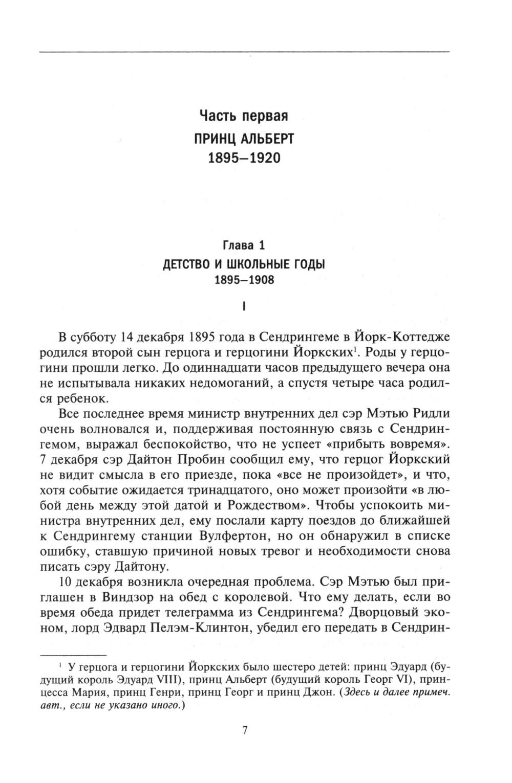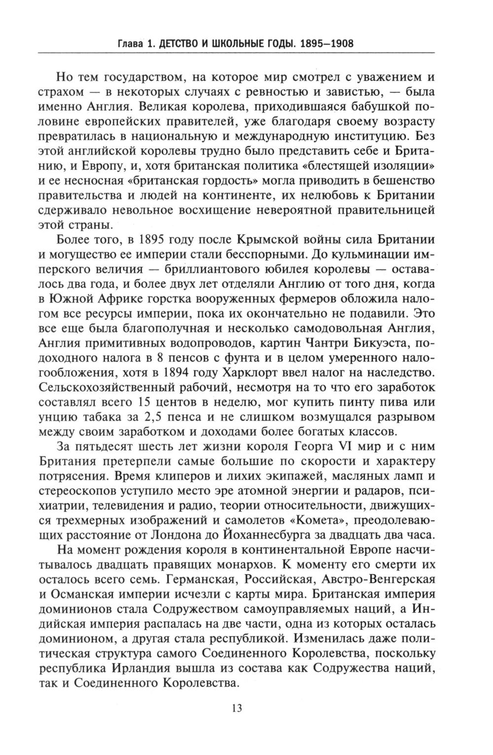 Известный английский историк Джон Уилер-Беннет создал портрет Георга VI Английского, возможно, более других монархов уважаемого и любимого в своей стране. Имея неограниченный доступ к королевским архивам, автор представил подробное жизнеописание этой незаурядной личности. Окончив Королевский военно-морской колледж в Осборне, принц Альберт в деятельности морского офицера, герцога Йоркского и короля Великобритании всегда проявлял спокойное мужество и упорство. Он научился летать, путешествовал по миру, сражался в Ютландии во время Первой мировой войны. В связи с отречением Эдуарда от престола в сорок один год принц вынужден был стать королем. Ему удалось продемонстрировать способность решительно действовать в чрезвычайных ситуациях, и таким образом он поступал на протяжении всей своей жизни. Георг VI стал первым правящим британским монархом, посетившим Америку. В годы войны король и королева укрепляли моральный дух Британии, лондонцы помнят, что оба монарха отказались покинуть город во время сокрушительных бомбардировок. В книге помещены редкие фотоматериалы.