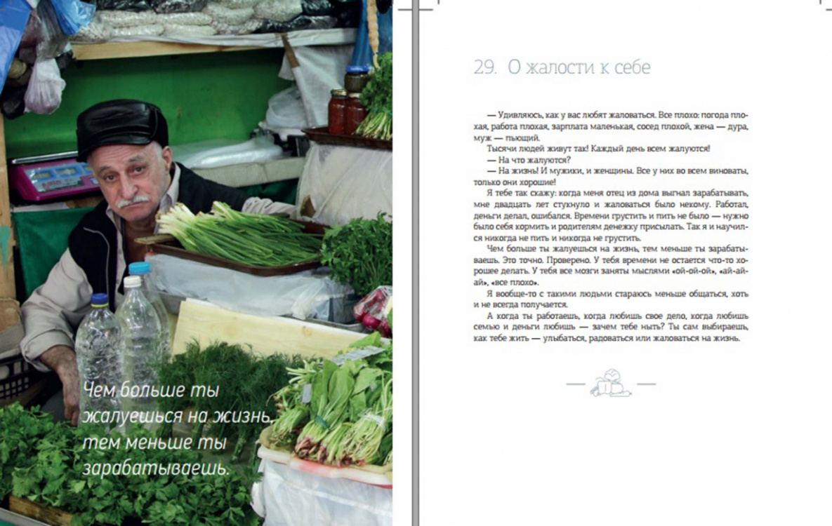 Герой этой книги - Магерам - много лет работает в Москве, торгует овощами и фруктами, и даже в самые тяжелые времена у его прилавка выстраиваются покупатели. Он не получал MBA, не читал сложных книг по бизнесу и не посещал тренингов, но у него получается продавать лучше всех и зарабатывать больше всех. Это ли не повод поучиться у него?