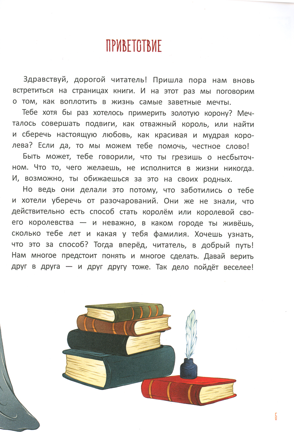 Ты мысленно примеряешь золотую корону? Мечтаешь совершать подвиги, как отважный король? Или же хочешь найти и сберечь настоящую любовь, как красивая и мудрая королева? Если да, то эта книга как раз для тебя. Она о том, как любить и понимать - себя и других, конечно. О том, как по-настоящему владеть своими желаниями и воплощать их в жизнь. О том, как быть счастливым и жить полной жизнью, что бы ни происходило вокруг. Думаешь, такому нельзя научиться? Ещё как можно! Скорее открывай книгу - и вперёд: нам многое предстоит узнать и ещё больше сделать. Зато результат будет однозначно королевским!| Издательство | Феникс |