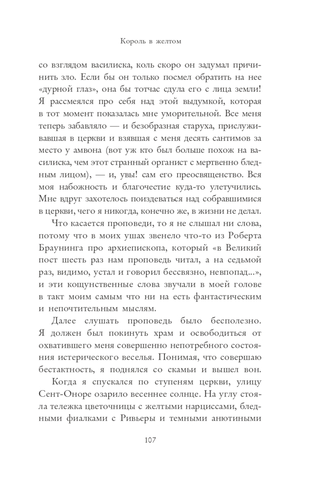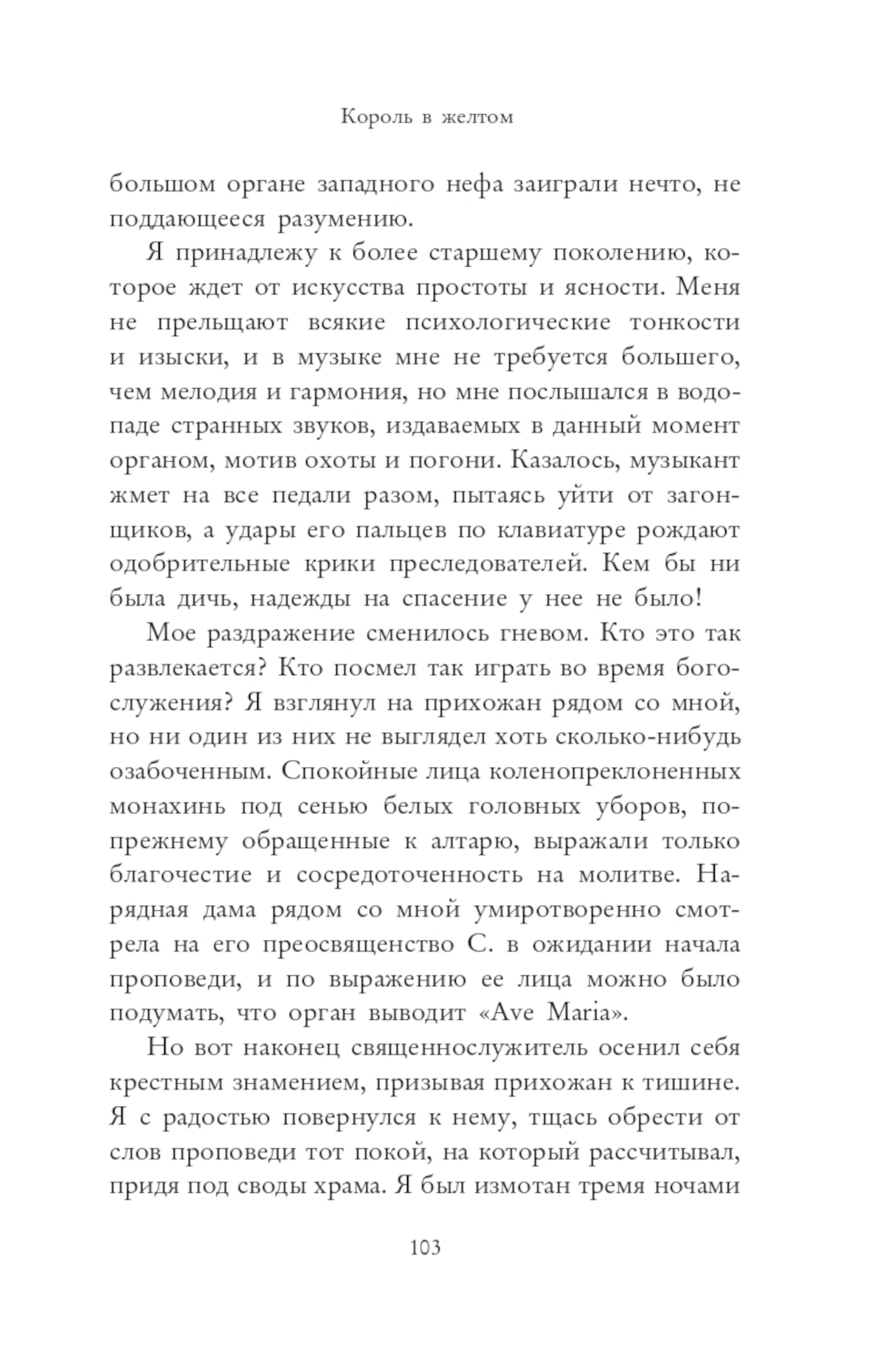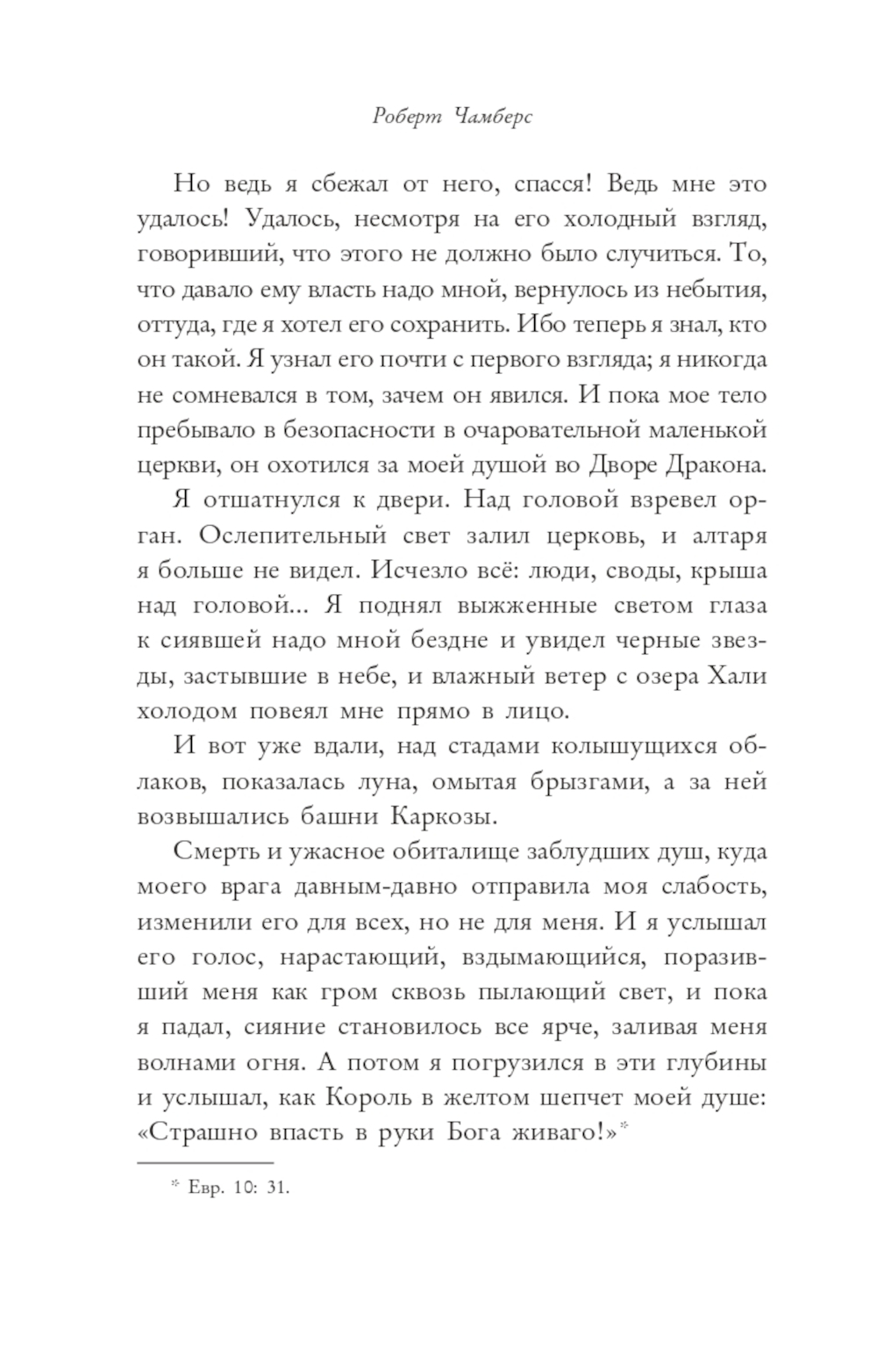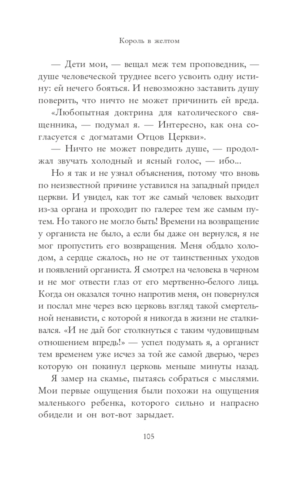 Поговаривают, что есть пьеса, которая оставляет после прочтения только безумие и печаль. Она искушает тех, кто ее читает, навлекая странные видения и приводя к отчаянию. Это «Король в желтом». Тревожные истории этого сборника связаны между собой и пронизаны присутствием Короля в желтом. А герои, соприкоснувшиеся с запрещенной пьесой, познают все тайны сверхъестественного. Культовая классика викторианско-готического ужаса, вдохновившая многих авторов, от Г. В. Лавкрафта до создателей сериала «Настоящий детектив».| Издательство | Metamorphoses |
