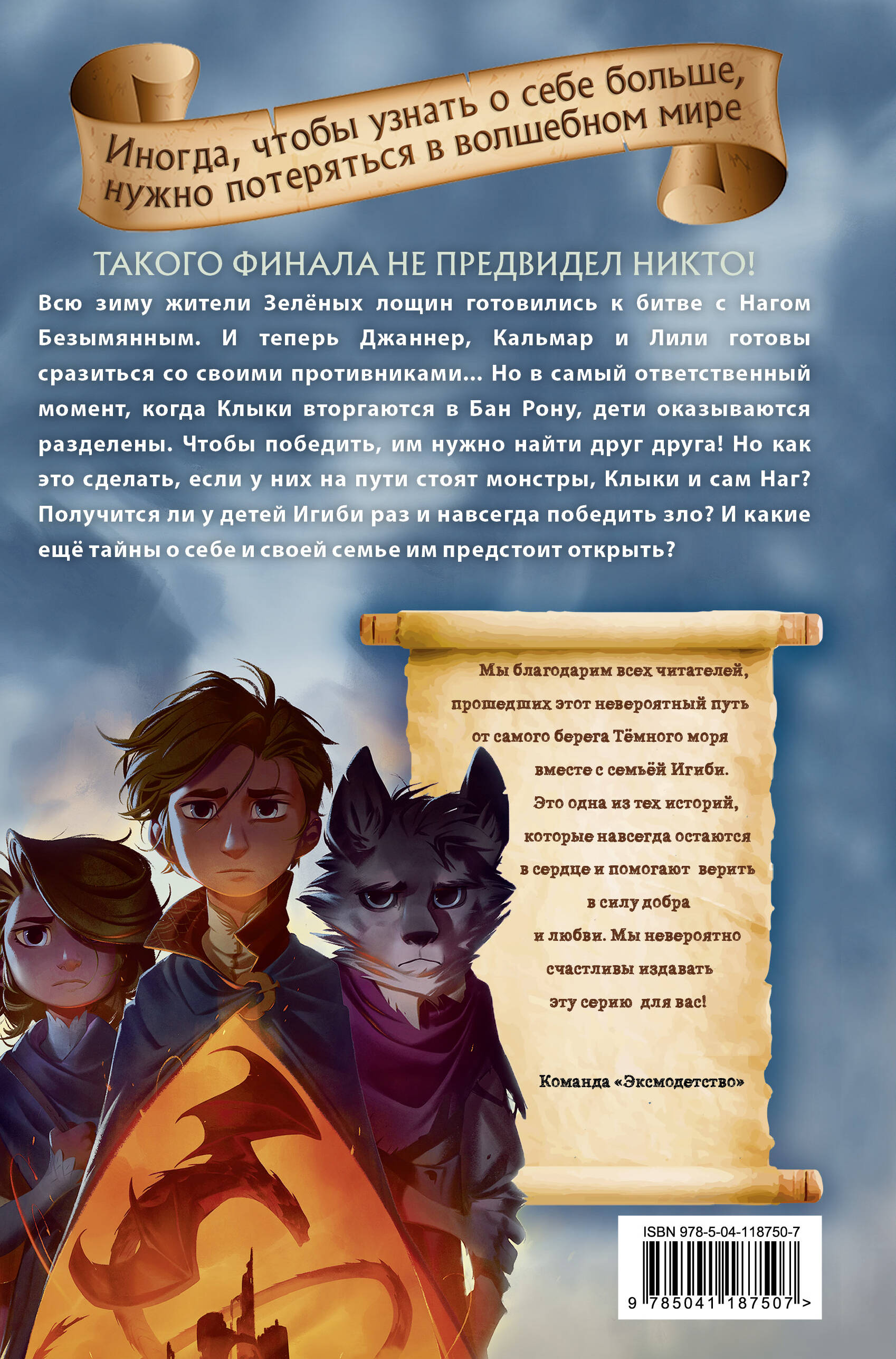 Долгожданный финал! Четвёртая книга в серии-бестселлере «Сага о семье Игиби», полюбившейся детям и взрослым по всему миру. Клыки вторгаются в Бан Рону, дети Игиби разделены! Чтобы противостоять ужасному злодею, Джаннеру, Кальмару и Лили необходимо найти путь друг к другу! Но как это сделать, если им противостоят монстры, Клыки и сам Наг? Получится ли у детей Игиби раз и навсегда победить зло? И какие ещё тайны о себе и своей семье им предстоит открыть? Лучшее детское фэнтези для поклонников «Властелина колец» и «Хроник Нарнии». Семью Игиби ждут приключения, с которыми сталкиваются только избранные герои - такие как Бильбо Бэггинс, дети Певенси и Гарри Поттер.| Издательство | ООО "Издательство "Эксмо" |