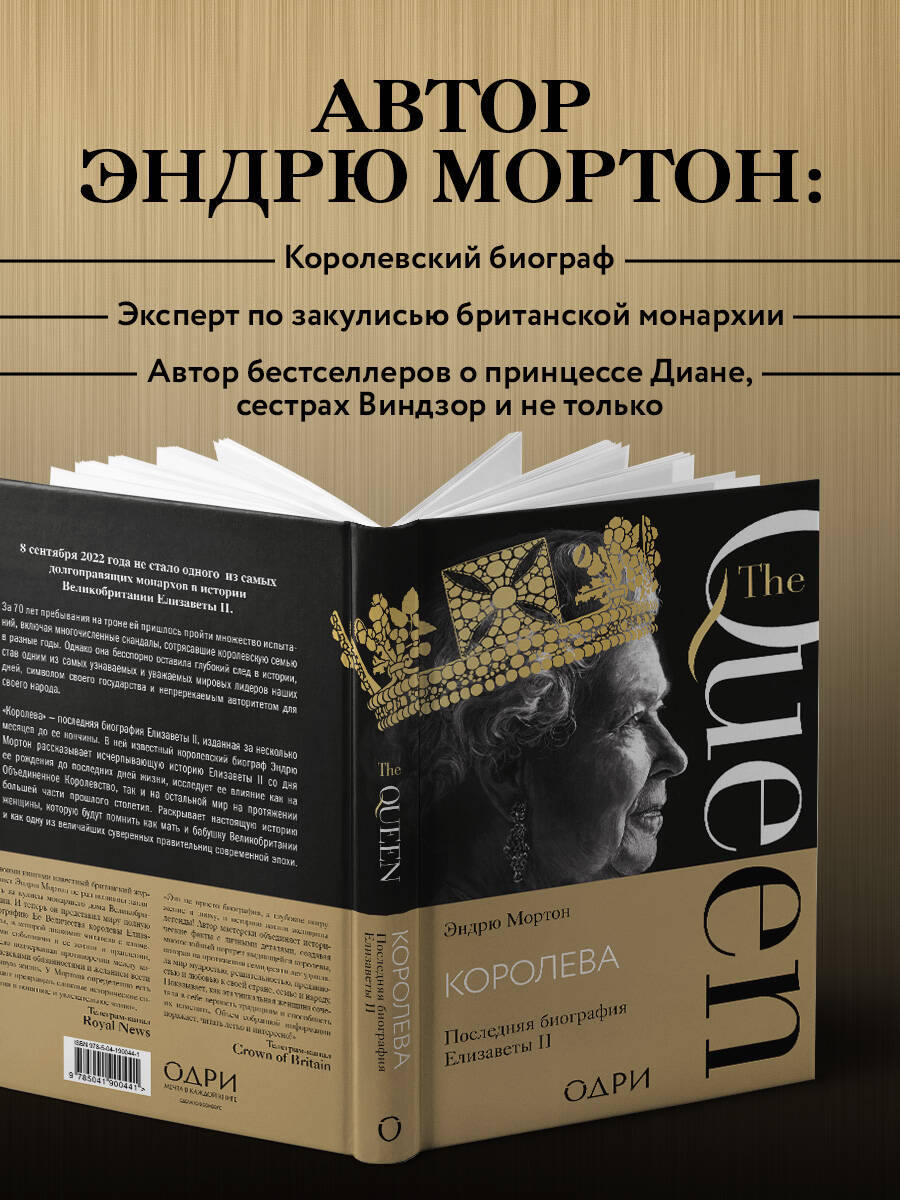 8 сентября 2022 года не стало одного из самых долгоправящих монархов в истории Великобритании Елизаветы II. За 70 лет пребывания на троне ей пришлось пройти множество испытаний, включая многочисленные скандалы, сотрясавшие королевскую семью в разные годы, но она бесспорно оставила глубокий след в истории, став одним из самых узнаваемых и уважаемых мировых лидеров наших дней, символом своего государства и непререкаемым авторитетом для своего народа. «Королева» - последняя биография Елизаветы II, изданная за несколько месяцев до ее кончины. В ней известный королевский биограф Эндрю Мортон рассказывает исчерпывающую историю Елизаветы II со дня ее рождения до последних дней жизни, исследует ее влияние как на Объединенное королевство, так и на остальной мир на протяжении большей части прошлого столетия. Раскрывает настоящую историю женщины, которую будут помнить как мать и бабушку Великобритании и как одну из величайших суверенных правительниц современной эпохи.| Издательство | ООО "Издательство "Эксмо" |