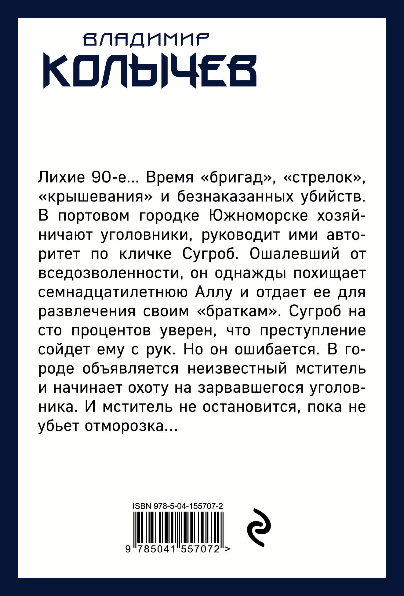 Лихие 90-е... Время «бригад», «стрелок», «крышевания» и безнаказанных убийств. В портовом городке Южноморске хозяйничают уголовники, руководит ими авторитет по кличке Сугроб. Ошалевший от вседозволенности, он однажды похищает семнадцатилетнюю Аллу и отдает ее для развлечения своим «браткам». Сугроб на сто процентов уверен, что преступление сойдет ему с рук. Но он ошибается. В городе объявляется неизвестный мститель и начинает охоту на зарвавшегося уголовника. И мститель не остановится, пока не убьет отморозка…| Издательство | ООО "Издательство "Эксмо" |