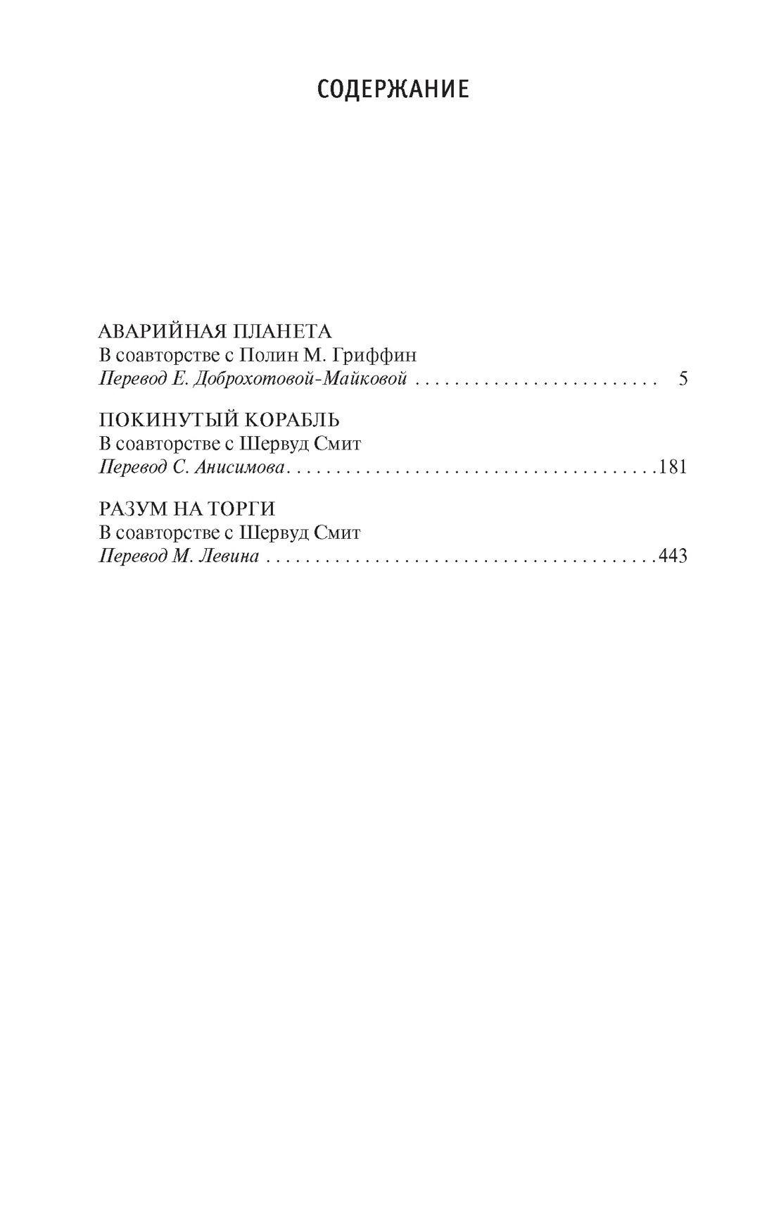 «Великий мастер фантастики» Андрэ Нортон прославилась в нашей стране благодаря циклу «Королева Солнца» о приключениях вольных космических торговцев, а началось все с романа «Саргассы в космосе», блистательно переведенного братьями Стругацкими под псевдонимом «С. Бережков, С. Витин» в далеком 1969 году. В космосе Нортон найдется место и пиратам, и сокровищам, и тайнам древних цивилизаций, и погоне на летающих катерах, и бегству через джунгли от стаи обезумевших мутантов… Почти через полвека после выхода классических книг цикла приключения «Королевы Солнца» продолжились в романах «Аварийная планета», «Покинутый корабль», «Разум на торги».| Издательство | Азбука |
