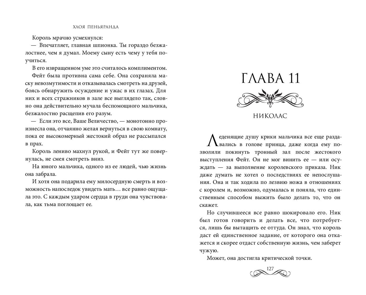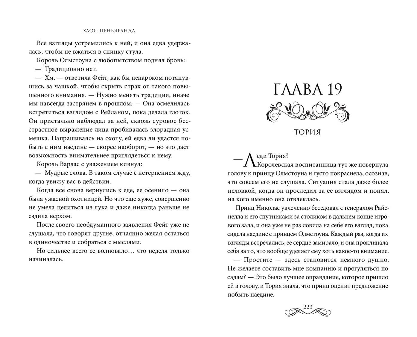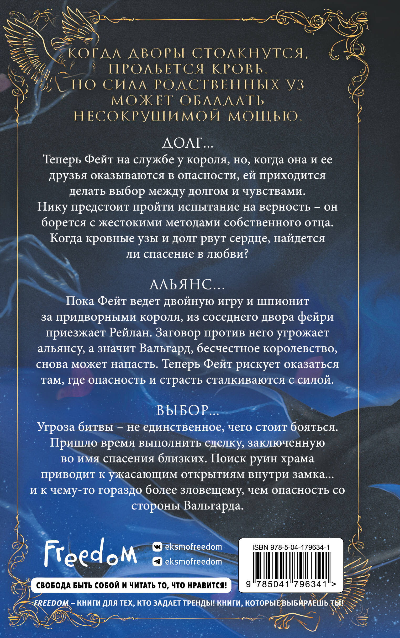 Продолжение серии «Ночные стражники» Хлои Пеньяранды. Сильная духом Фейт каждый день подвергается испытаниям на службе у короля. Новые персонажи, королевства, секреты, неожиданные открытия, опасная магия, зарождающаяся любовь. Теперь Фейт на службе у короля, но, когда она и ее друзья оказываются в опасности, ей приходится делать выбор между долгом и чувствами. Нику предстоит пройти испытание на верность - он борется с жестокими методами собственного отца. Когда кровные узы и долг рвут сердце, найдется ли спасение в любви? Пока Фейт ведет двойную игру и шпионит за придворными короля, из соседнего двора фейри приезжает Рейлан. Заговор против него угрожает альянсу, а значит, Вальгард, бесчестное королевство, снова может напасть. Теперь Фейт рискует оказаться там, где опасность и страсть сталкиваются с силой. Угроза битвы - не единственное, чего стоит бояться. Пришло время выполнить сделку, заключенную во имя спасения близких. Поиск руин храма приводит к ужасающим открытиям внутри замка... и к чему-то гораздо более зловещему, чем опасность со стороны Вальгарда. Фейт - потомок богини, избранная избавить мир от зла. Рейлан - фейри из соседнего королевства. Как они связаны и сумеют ли вместе остановить надвигающийся хаос? Для поклонников романов «Стеклянный трон» Сары Дж. Маас и "Алой королевы" Виктории Авеярд.| Издательство | ООО "Издательство "Эксмо" |