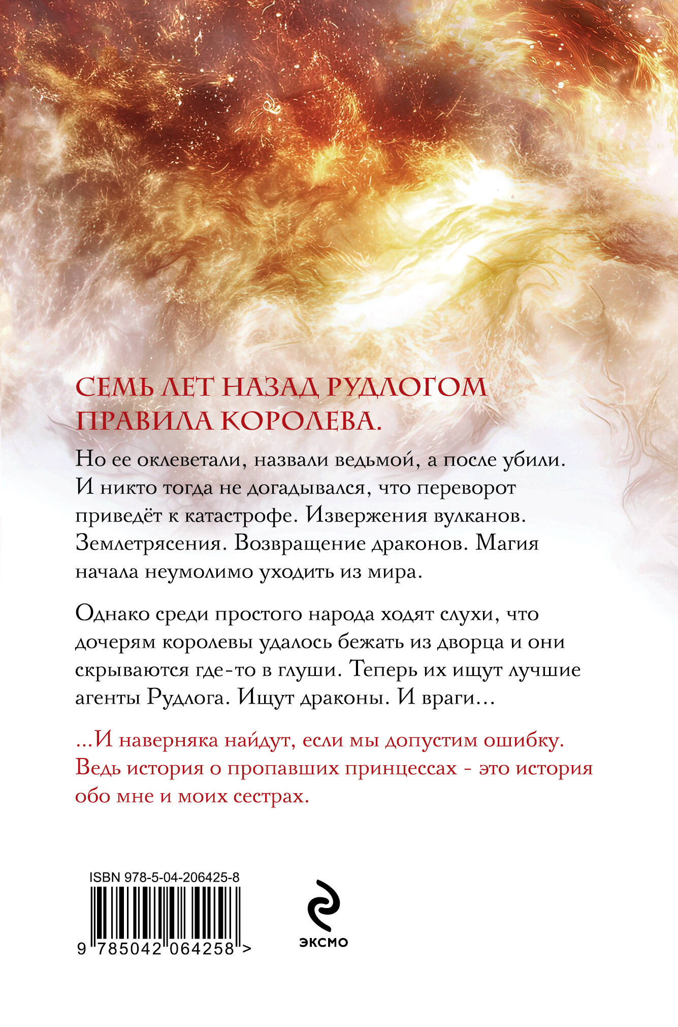 Семь лет назад Рудлогом правила королева. Но ее оклеветали, назвали ведьмой, а после убили. И никто тогда не догадывался, что переворот приведёт к катастрофе. Извержения вулканов. Землетрясения. Возвращение драконов. Магия начала неумолимо уходить из мира. Однако среди простого народа ходят слухи, что дочерям королевы удалось бежать из дворца и они скрываются где-то в глуши. Теперь их ищут лучшие агенты Рудлога. Ищут драконы. И враги... …И наверняка найдут, если мы допустим ошибку. Ведь история о пропавших принцессах - это история обо мне и моих сестрах.| Издательство | ООО "Издательство "Эксмо" |