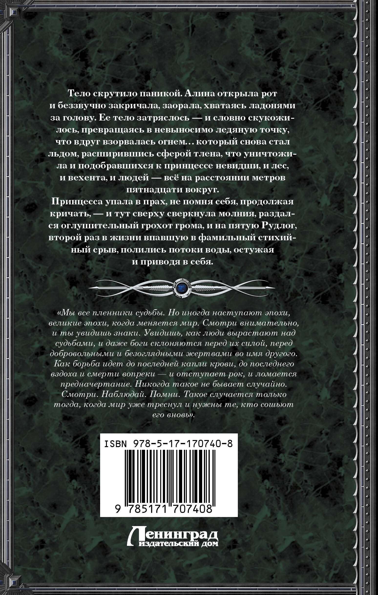 "Мы все пленники судьбы. Но иногда наступают эпохи, ве- ликие эпохи, когда меняется мир. Смотри внимательно, и ты увидишь знаки. Увидишь, как люди вырастают над судьбами, и даже боги склоняются перед их силой, перед добровольны- ми и безоглядными жертвами во имя другого. Как борьба идет до последней капли крови, до последнего вздоха и смерти во- преки - и отступает рок, и ломается предначертание. Никог- да такое не бывает случайно. Смотри. Наблюдай. Помни. Такое случается только тогда, когда мир уже треснул и нужны те, кто сошьют его вновь".| Издательство | Издательство "АСТ" |