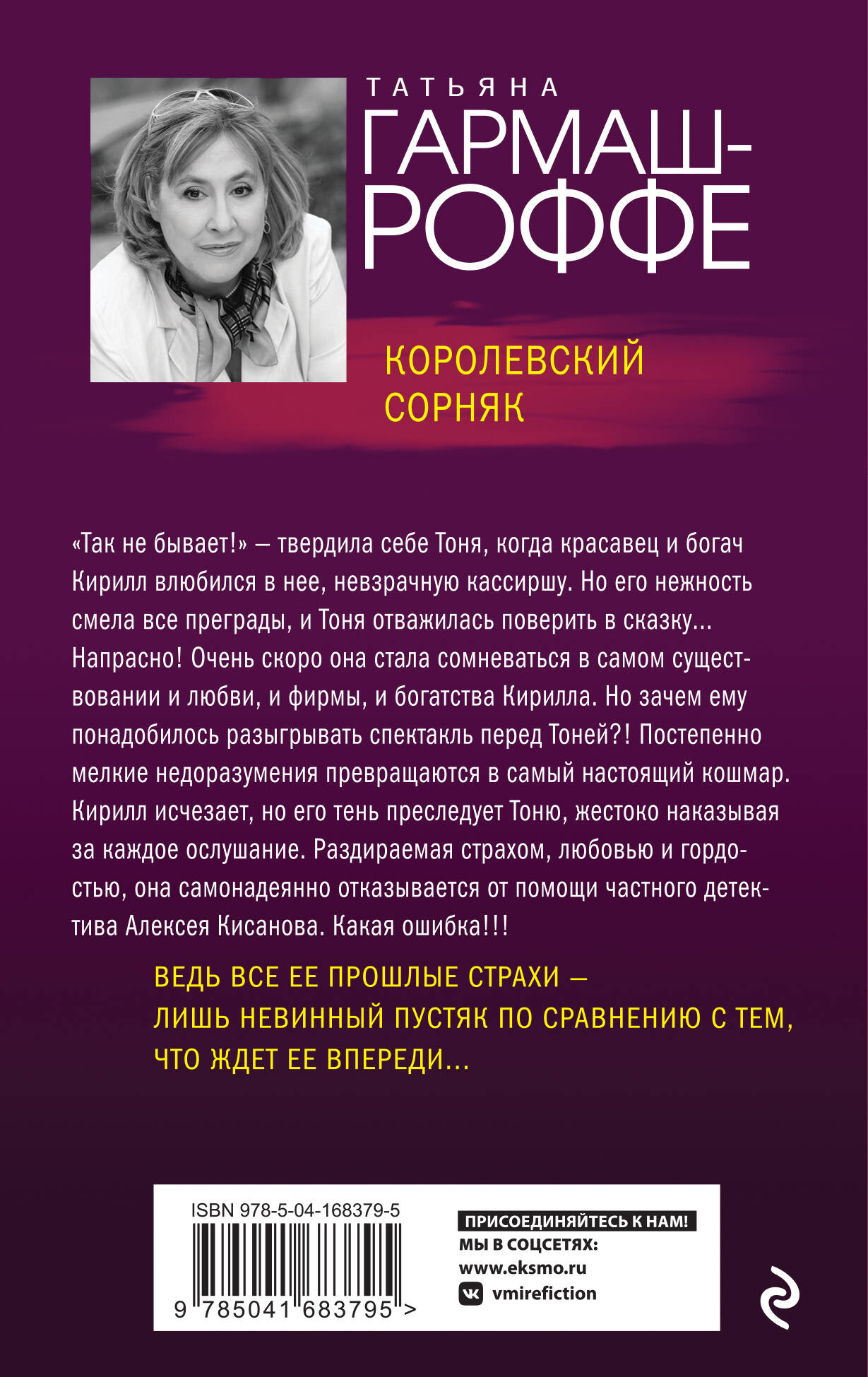 «Так не бывает!» - твердила себе Тоня, когда красавец и богач Кирилл влюбился в нее, невзрачную кассиршу. Но его нежность смела все преграды, и Тоня отважилась поверить в сказку... Напрасно! Очень скоро она стала сомневаться в самом существовании и любви, и фирмы, и богатства Кирилла. Но зачем ему понадобилось разыгрывать спектакль перед Тоней?! Постепенно мелкие недоразумения превращаются в самый настоящий кошмар. Кирилл исчезает, но его тень преследует Тоню, жестоко наказывая за каждое ослушание. Раздираемая страхом, любовью и гордостью, она самонадеянно отказывается от помощи частного детектива Алексея Кисанова. Какая ошибка!!! Ведь все ее прошлые страхи - лишь невинный пустяк по сравнению с тем, что ждет ее впереди... Татьяна Гармаш-Роффе отлично знает, каким должен быть настоящий детектив, и следует в своих романах законам жанра. Театральный критик, она умеет выстраивать диалоги и драматургию чувств. Неординарная личность, она дарит часть своей харизмы персонажам. Непредсказуемость сюжетных поворотов, точность в логике и деталях, психологическая достоверность в описании чувств - таково ИСКУССТВО ДЕТЕКТИВА Татьяны Гармаш-Роффе.| Издательство | ООО "Издательство "Эксмо" |