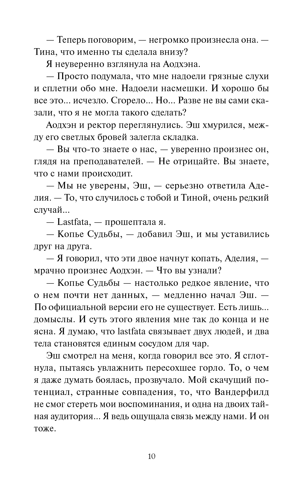 Lastfata, Копье Судьбы… Страшная тайна, связавшая Тину Аддерли из Котловины и великолепного Эша Вандерфилда. О ней не написано в книгах, из архивов удалены почти все упоминания, а тех, кого она коснулась, уже нет в живых. Как обычным ученикам магической академии справиться со страшным проклятием, которое грозит не только им двоим, но и всей Тритории?| Издательство | Манн, Иванов и Фербер |