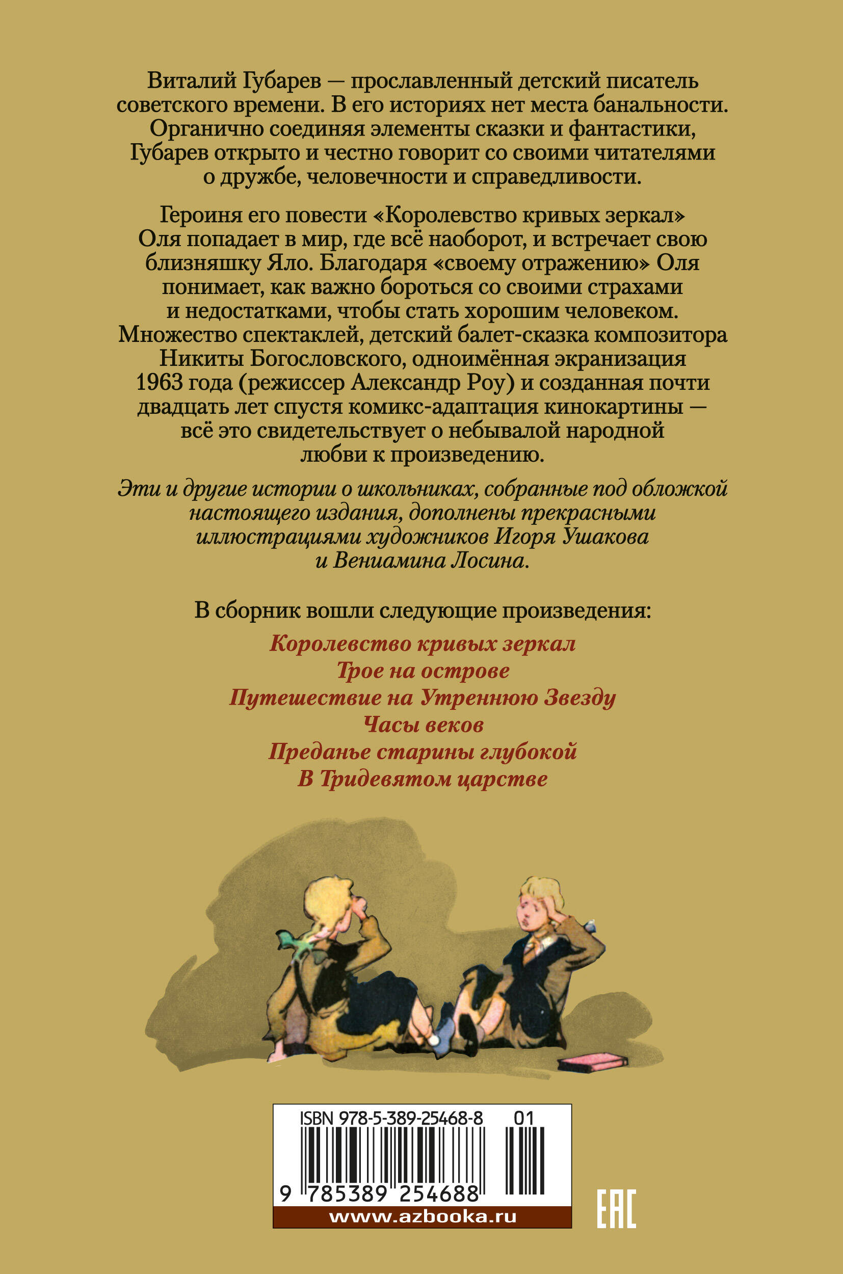 Оля - обычная девочка, вот только до жути непослушная, рассеянная и ленивая. Рано вставать в школу или класть вещи на место - не для неё. Оля не замечала в себе недостатков, пока не познакомилась со своим отражением по имени Яло. Внешне Яло - точная копия Оли, в остальном же полная её противоположность: смелая, прилежная и внимательная. Волшебным образом девочки попадают в Королевство кривых зеркал, где крошка хлеба кажется целой булкой, глупцов называют мудрецами, а уродин считают настоящими красавицами - в общем, там всё наоборот. Чтобы вернуться домой, Оле вместе с Яло предстоит пережить много опасных приключений, вызволить из темницы зеркальщика Гурда, а также одолеть невежественного короля Топседа и его жестокого министра Нушрока, которые уже долгое время угнетают простой народ. В настоящий сборник также вошли и другие не менее увлекательные истории Виталия Губарева о дружбе, не знающей границ, невероятных космических путешествиях и волшебстве, которое может произойти с каждым.| Издательство | Азбука-Аттикус Издат.группа ООО |