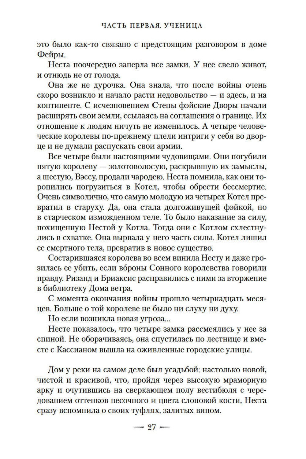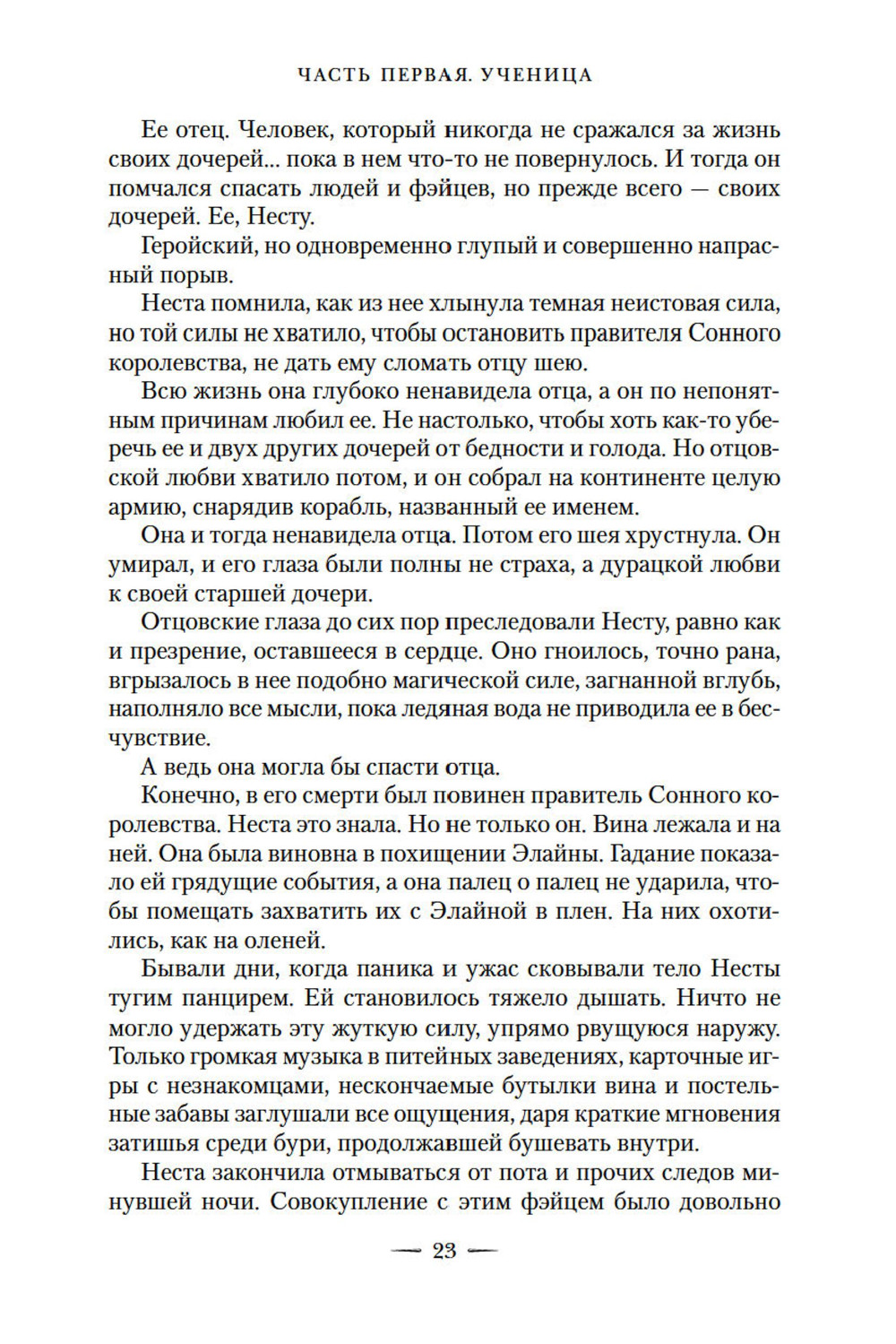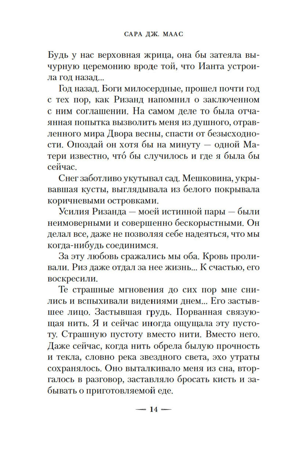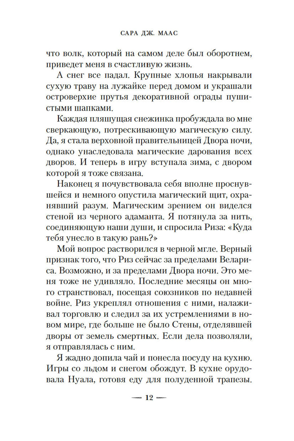 Комплект из 2 книг: «Королевство стужи и звездного света» Война окончена, в Притианию пришел мир. Коварные планы правителя Сонного королевства, вступившего в сговор с Тамлином, верховным правителем Двора весны, разрушены. Казалось бы, ничто не может омрачить радости победителей и грядущий День зимнего солнцестояния люди встретят, не опасаясь ударов со стороны темных сил. Только рано еще почивать на лаврах. На севере, в Иллирианских горах, где расположены лагеря крылатых воинов, зреет мятеж. И Фейре с Ризандом, верховным правителям Двора ночи, надо сделать все возможное и невозможное, чтобы предотвратить кровавую бойню. «Королевство серебряного пламени» Неста, сестра Фейры, Верховной правительницы Двора ночи, после погружения в древний источник, содержащий первооснову жизни, обретает силу, непонятную и неподвластную ей самой. Она не знает, как справиться с этим даром, но мудрые родственники наставляют ее на путь истинный и отправляют в Дом ветра осваивать древнее воинское искусство валькирий, истребленных полностью в сражениях прошлого. Тем временем Бриаллина, королева людей, вступает в союз с Косфеем, существом, неподвластным смерти. Она завладевает Короной - одним из трех магических артефактов из Сокровищницы ужасов, - и способна теперь подчинить своей воле любого смертного. Чтобы ей противостоять, нужно найти два других артефакта древности - Арфу, способную преодолевать пространство и останавливать время, и Маску, способную воскрешать мертвых. Неста, наделенная силой и обученная искусству воина, готова выполнить эту миссию...| Издательство | Азбука |