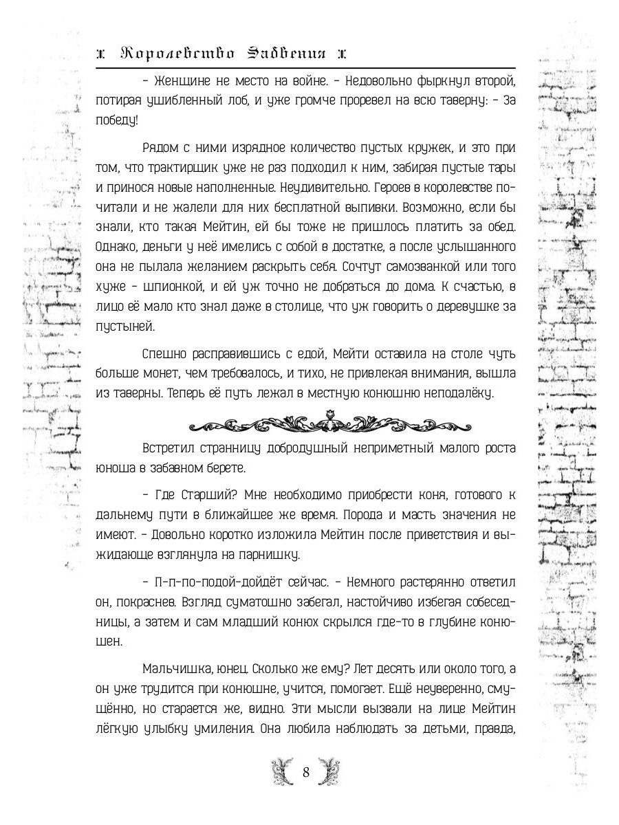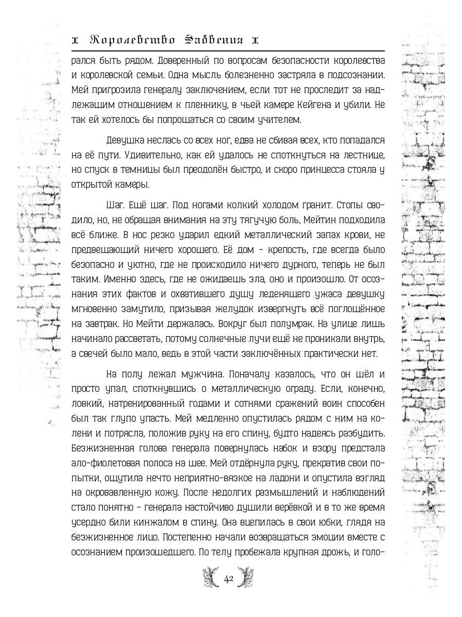Мейтин - настоящая леди голубых кровей, воспитанная в лучших традициях королевства. И кто бы мог знать, что однажды она очнётся посреди пустыни, с трудом способная вспомнить события последних суток. А возвращение домой не только не принесёт ей ответов на многочисленные вопросы, но и добавит загадок в виде приговорённого к смерти заключённого, чей взгляд столь сильно отпечатан в памяти. Взгляд, лишивший её сердце покоя.| Издательство | Т8 RUGRAM |