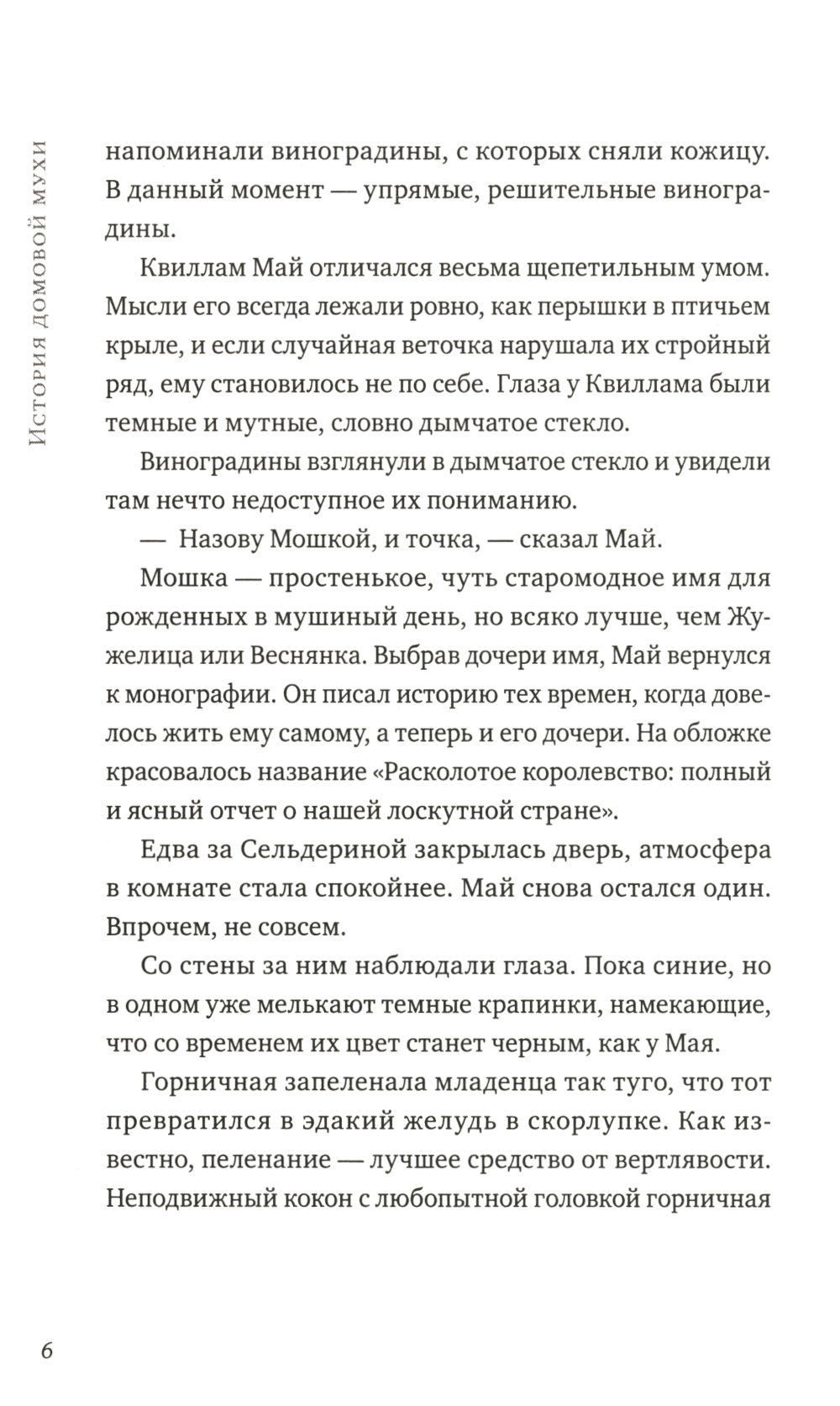 Двенадцатилетняя Мошка Май после смерти отца-ученого влачит жалкое существование у своих дальних родственников. Загоревшаяся мельница становится для девочки отличным поводом сбежать и пуститься в приключения с новыми друзьями. Ее странными спутниками становятся поэт и жулик Эпонимий Клент и зловредный гусак Сарацин. Эта пестрая троица и не подозревает, что окажется в паутине интриг и предательств, в мире безграмотности и междоусобиц, где книги считаются злом, а закон карает за печатное слово! Но главное - что их основными врагами окажутся внутренние демоны: трусость, эгоизм и равнодушие.| Издательство | Клевер-Медиа-Групп |