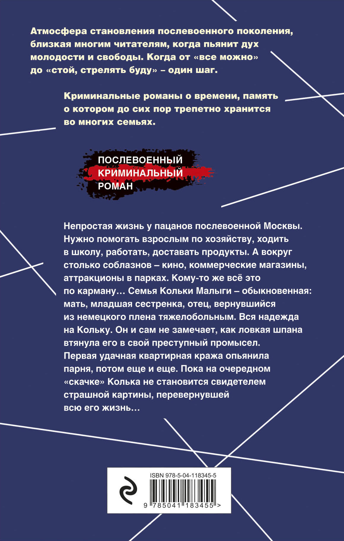 Атмосфера становления послевоенного поколения, близкая многим читателям, когда пьянит дух молодости и свободы. Когда от «все можно» до «стой, стрелять буду» - один шаг. Криминальные романы о времени, память о котором до сих пор трепетно хранится во многих семьях. Персонажи, похожие на культовые образы фильма «Прощай, шпана замоскворецкая». Непростая жизнь у пацанов послевоенной Москвы. Нужно помогать взрослым по хозяйству, ходить в школу, работать, доставать продукты. А вокруг столько соблазнов - кино, коммерческие магазины, аттракционы в парках. Кому-то же всё это по карману… Семья Кольки Малыги - обыкновенная: мать, младшая сестренка, отец, вернувшийся из немецкого плена тяжело больным. Вся надежда на Кольку. Он и сам не замечает, как ловкая шпана втянула его в свой преступный промысел. Первая удачная квартирная кража опьянила парня, потом еще и еще. Пока на очередном «скачке» Колька не становится свидетелем страшной картины, перевернувшей всю его жизнь…| Издательство | ООО "Издательство "Эксмо" |