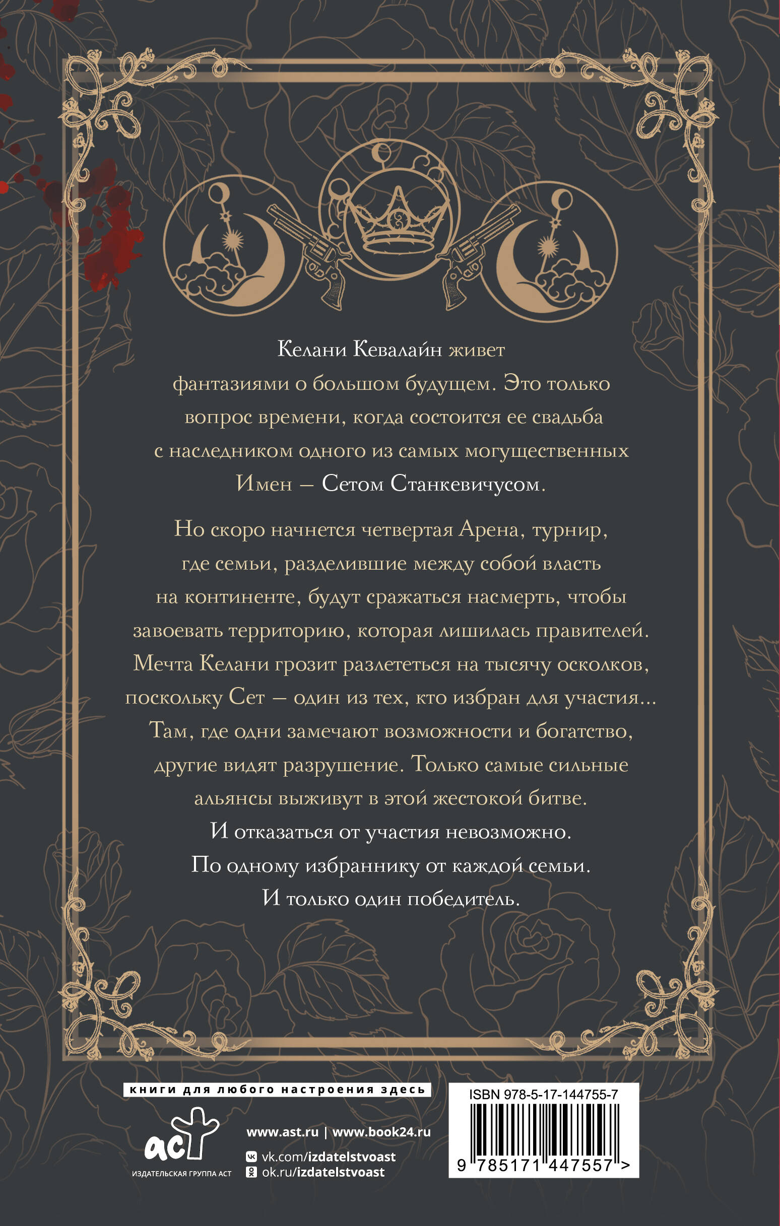 Никто никогда не задумывался, насколько огромен мир на самом деле. Кажется, что было не так уж сложно разделить все эти замли между не менее многочисленными правящими семействами. Однако на Новом континенте их всего восемь, и все подчиняются Корвену Ротбатнеру, королю Корвинии. Каждый род растит своих наследников и наследниц. Келани Кевалайн уверена: она среди них самая счастливая. Пышная роскошь, аристократичный лоск, придворные развлечения, скорая свадьба с Сетом, её возлюбленным - всё это позволяет ей почувствовать себя действительно живой. Но даже в её жизнь приходят страшные вести: Сет избран для участия в Арене - турнире, определяющем судьбу оставшихся без правителей земель. Единственному победителю достаётся всё. Побеждённым - смерть.| Издательство | Издательство "АСТ" |