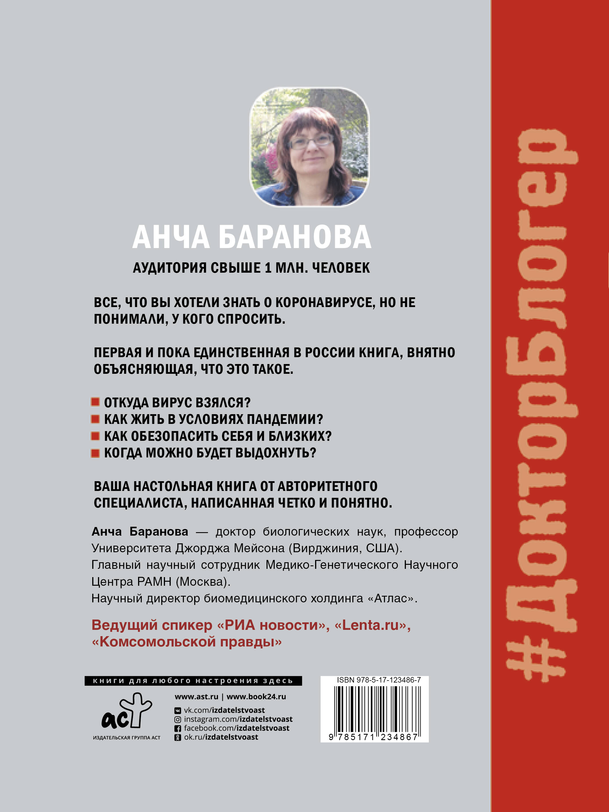 Все, что вы хотели знать о коронавирусе, но не понимали у кого спросить. Первая и пока единственная в России книга, внятно объясняющая, что это такое. Откуда вирус взялся? Как жить в условиях пандемии? Как обезопасить себя и близких? Когда можно будет выдохнуть? Ваша настольная книга от авторитетного специалиста, написанная четко и понятно. Анча Баранова - доктор биологических наук, профессор Университета Джорджа Мейсона (Вирджиния, США). Главный научный сотрудник Медико-Генетического Научного Центра РАМН (МГНЦ РАМН) (Москва). Научный директор биомедицинского холдинга "Атлас". Ведущий спикер «РИА новости», «Комсомольской правды», Lenta.ru| Издательство | ИЗДАТЕЛЬСТВО "АСТ" |