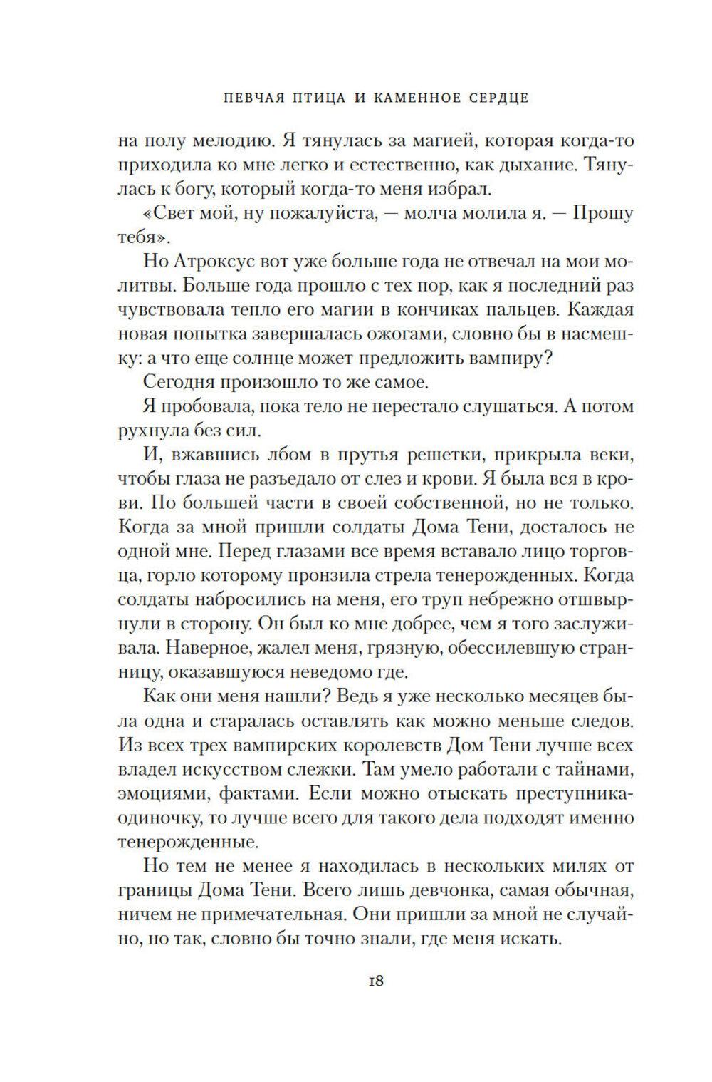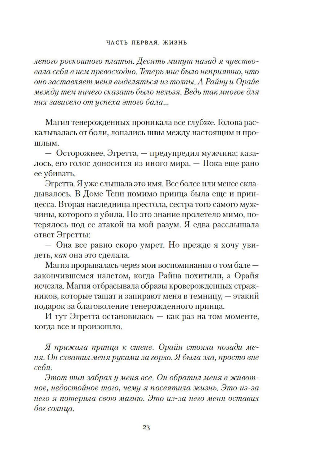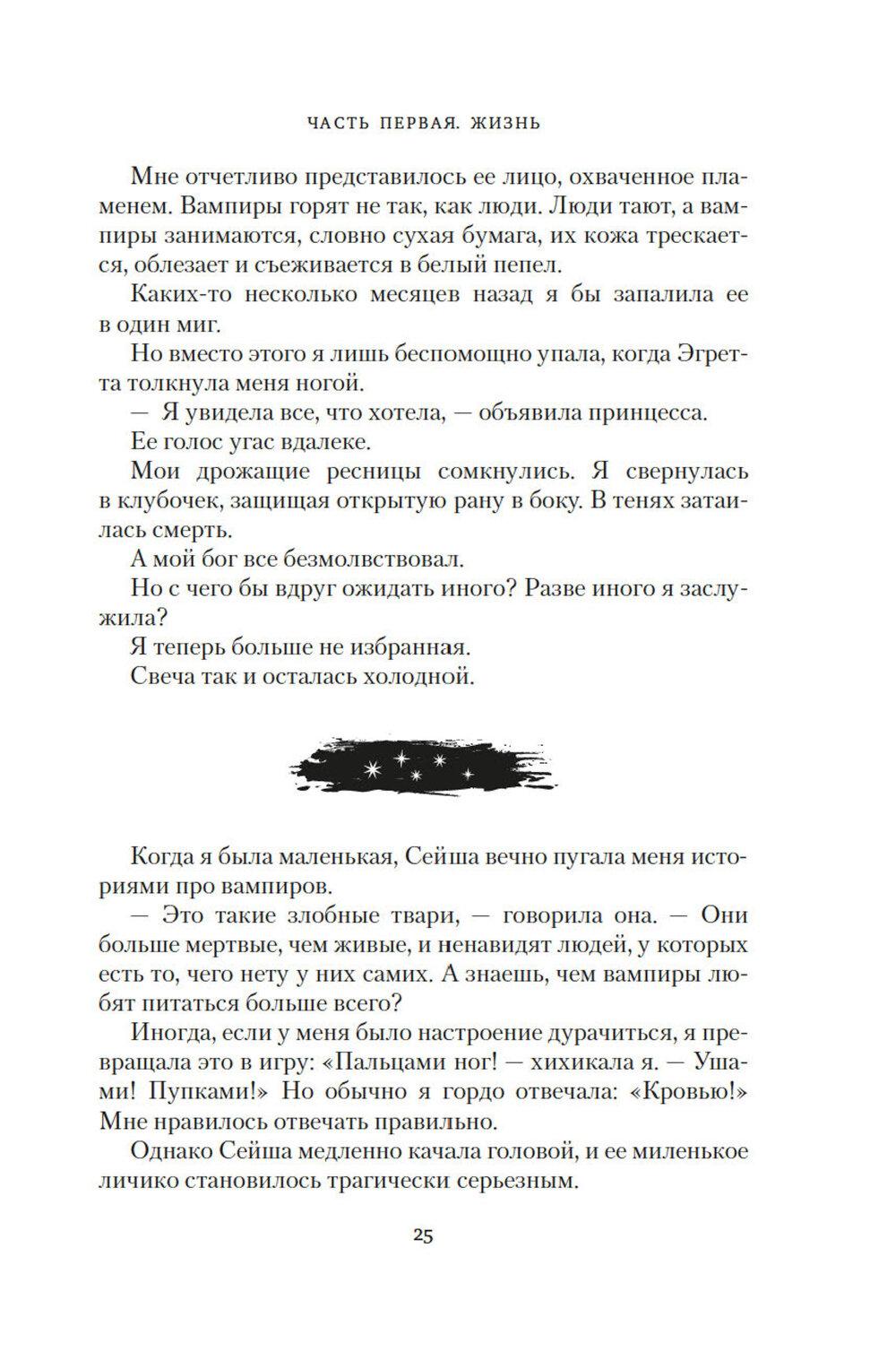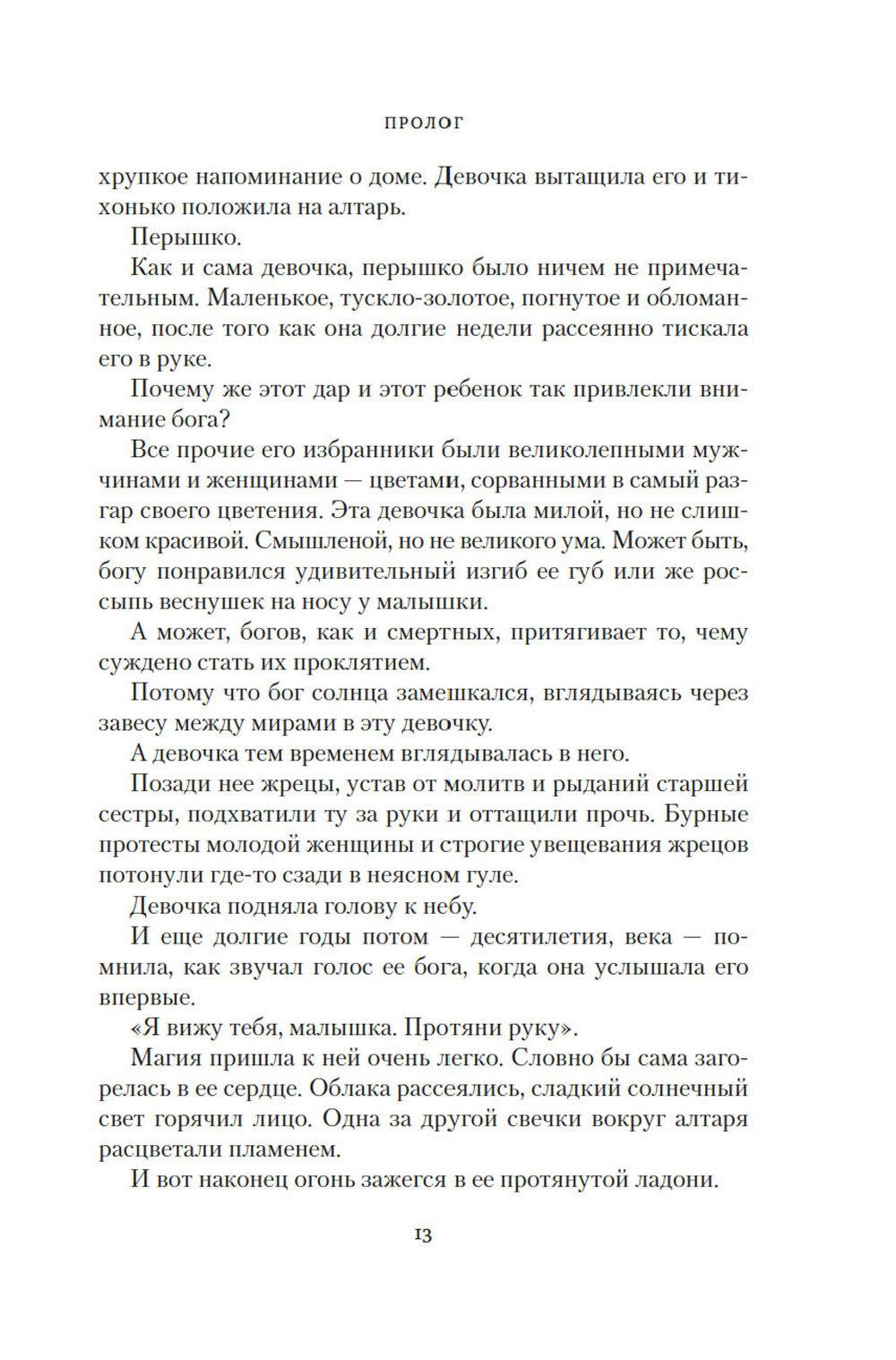 Избранница солнца, Мише неустанно молилась и несла свет всем, кого стремились поглотить тени. Но однажды в тени оказалась она сама. Принц Дома Тени насильно обратил молодую жрицу в вампира, и теперь она ждет казни за его убийство - отвергнутая своим богом Атроксусом и лишенная магии. Но в ту секунду, когда клинок уже готов рассечь ей горло, приходит избавление. Или еще более суровое наказание. Азар, незаконнорожденный брат убитого, спас Мише не просто так: она нужна ему, чтобы воскресить бога смерти. Мише предстоит отправиться в невероятно опасное путешествие в нижний мир, столкнуться с неведомыми чудовищами, сразиться с худшими кошмарами собственного прошлого и... выбрать между солнцем и тенью. В отчаянной жажде искупления Мише пообещала Атроксусу убить бога смерти сразу после воскрешения. А значит, предать Азара. Однако солнце не только греет, но и обжигает, а в тенях прячутся такие сокровища, которые Мише и не надеялась отыскать, - магия, легкая, как дыхание, и любовь, свободная, как птица.| Издательство | Азбука |
