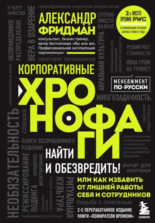 Хронофаги - пожиратели времени, порочные бизнес-процессы, которые негативно влияют на действия сотрудников и работу всей компании. Хорошего руководителя отличает способность выявлять хронофаги и своевременно блокировать их. В этой книге Александр Фридман, консультант и бизнес-тренер, рассказывает про 34 типа корпоративных пожирателей времени. Он предлагает подходы, которые помогут сделать механизм управления процессами и сотрудниками более эффективным и прозрачным.