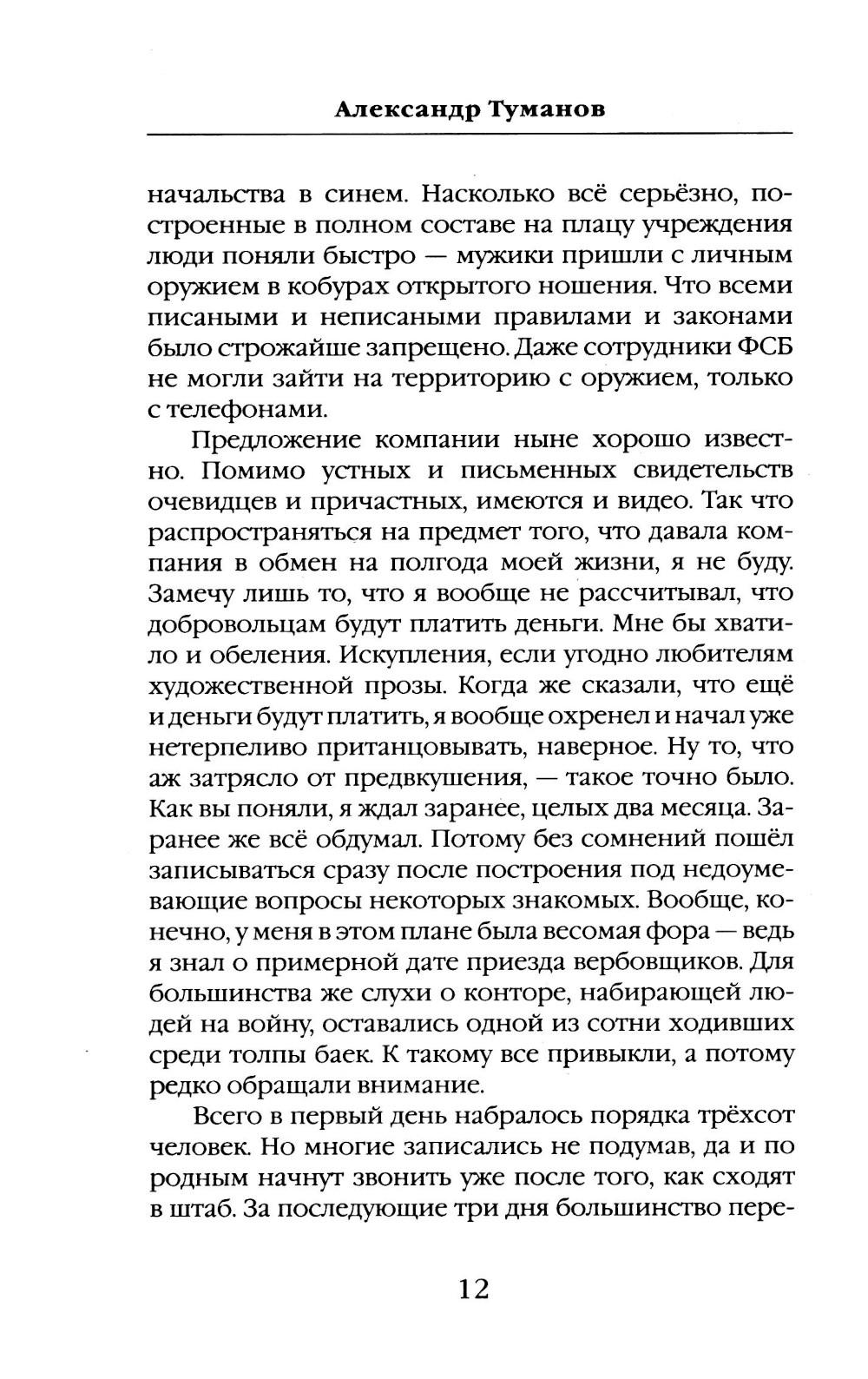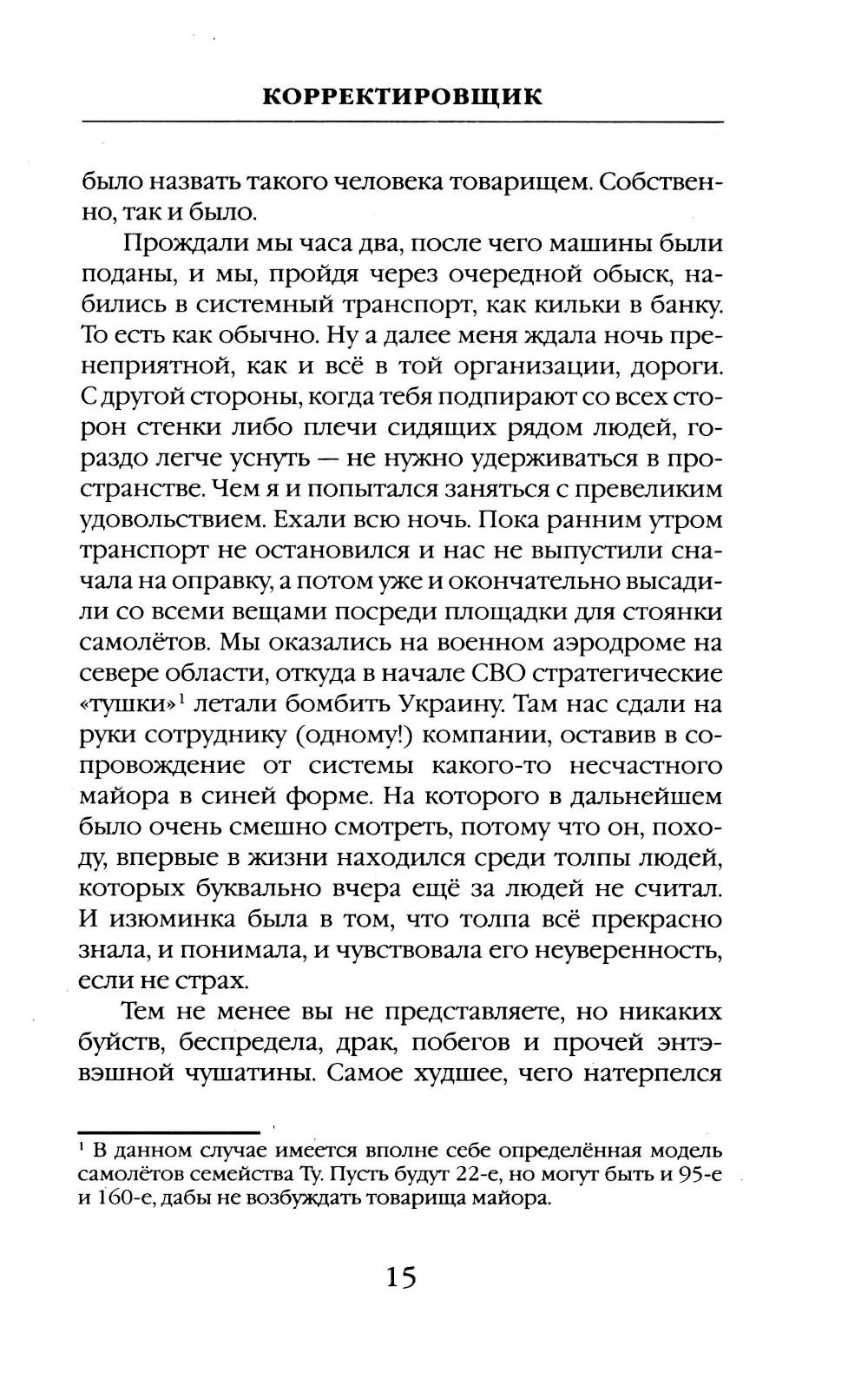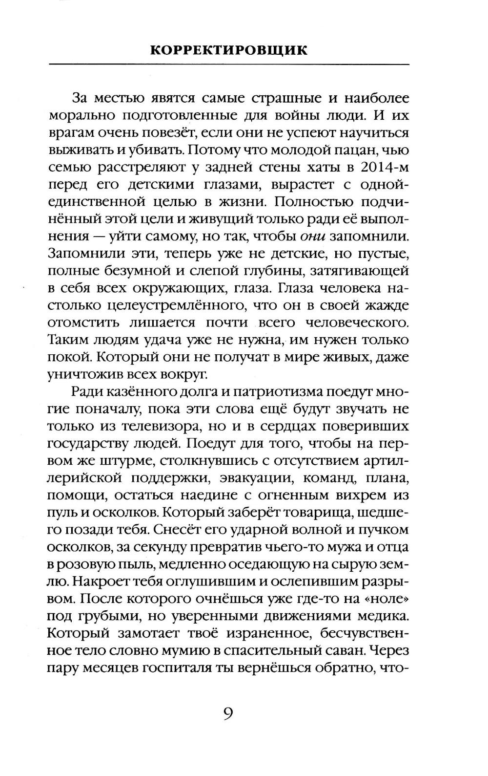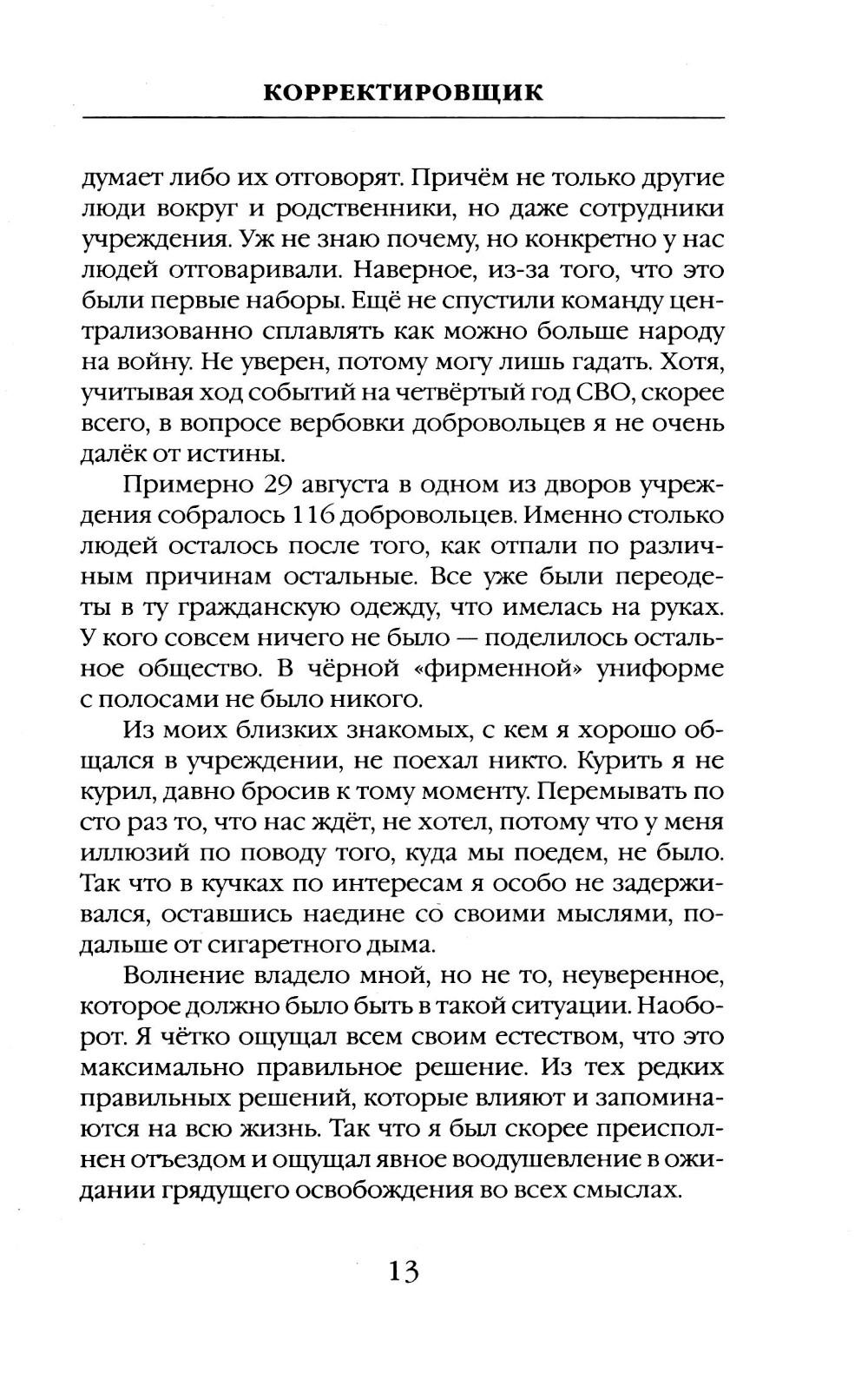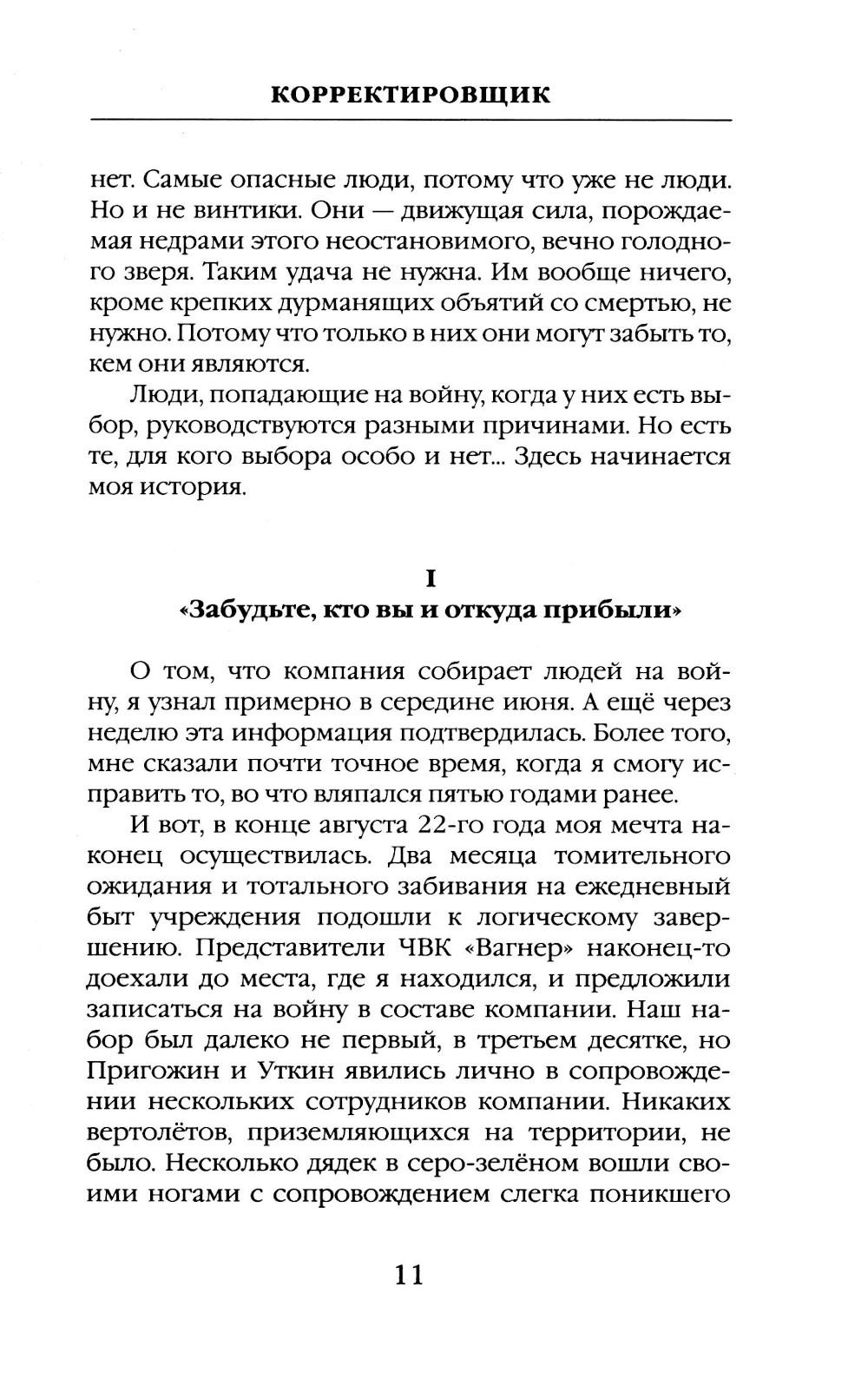 Автор этой книги прошёл путь из мест лишения свободы к службе в ЧВК «Вагнер» и без утайки делится своим боевым опытом. Это не просто описание тяжелейших боев, а взгляд на современную войну глазами того, кто кардинально изменил свою судьбу, подписав контракт и оказавшись в самой гуще СВО. От первого лица, изнутри «конторы», вы узнаете, как устроена служба в «Вагнере», как выживают и побеждают в условиях непрекращающихся боёв. Корректировщик, прошедший через ад позиционных сражений под Бахмутом, делится с читателями своими размышлениями о войне, о жизни и смерти, о долге и чести. Эта книга - ваш шанс увидеть войну такой, какая она есть на самом деле, прикоснуться к окопной правде вагнеровцев, скрытой за бравурными новостными сводками.| Издательство | Яуза-каталог |