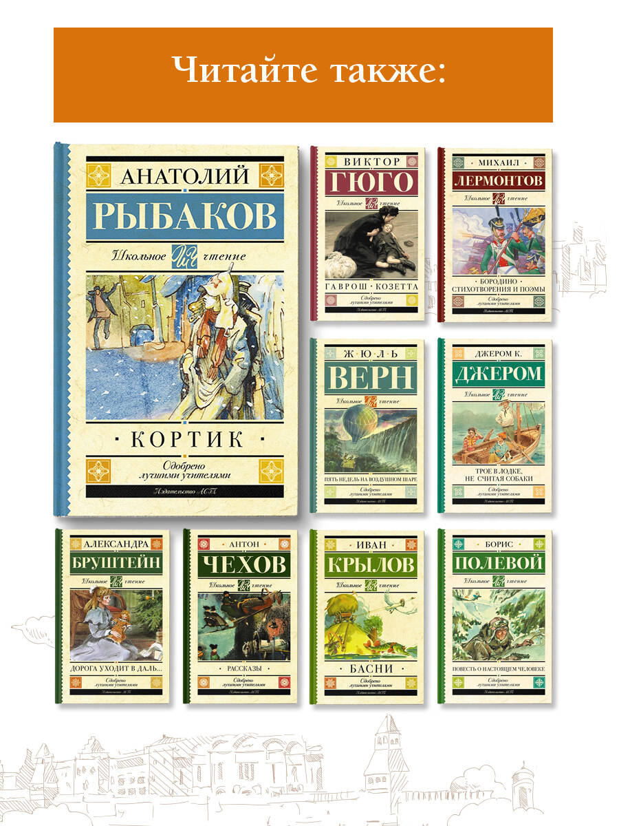 Прозаик Анатолий Рыбаков - автор «взрослой» трилогии «Дети Арбата» - начал свой путь в литературе с приключенческих повестей для детей: «Кортик», «Бронзовая птица». На них выросло не одно поколение, но эти книги по-прежнему не устаревают! Друзья Миша и Гена попадают в опасное приключение, и все из-за кортика, который Миша находит в тайнике. Ребята даже не представляют, какую загадку хранит в себе этот кортик и сколько человек хотят найти его! Но, взяв эту вещь себе, они уже не могут уйти от надвигающейся опасности, и кто знает, может быть, внимательность, осторожность и чуткость помогут им удачно выйти из этой истории…| Издательство | ИЗДАТЕЛЬСТВО "АСТ" |