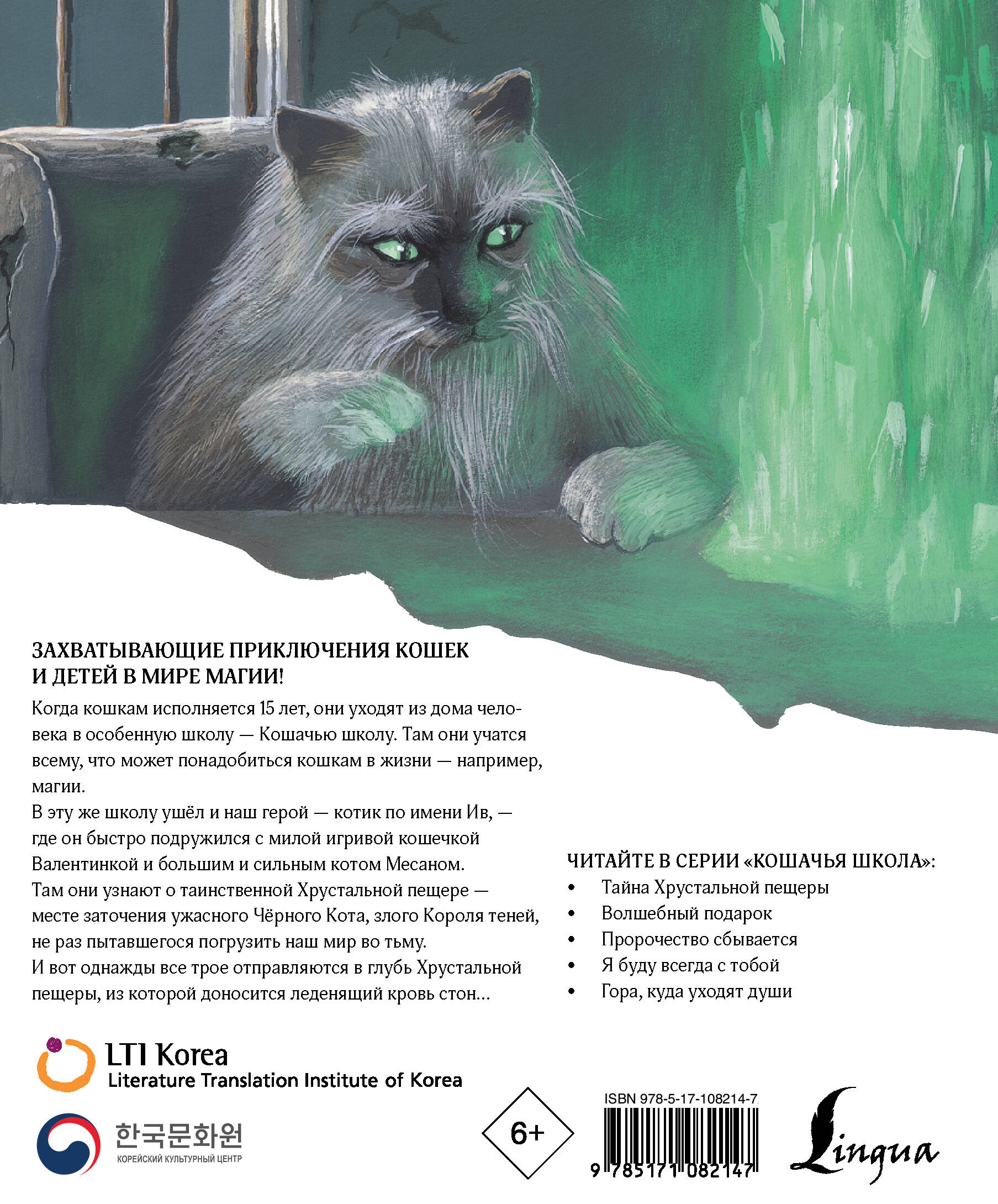 ЗАХВАТЫВАЮЩИЕ ПРИКЛЮЧЕНИЯ КОШЕК И ДЕТЕЙ В МИРЕ МАГИИ! Когда кошкам исполняется 15 лет, они уходят из дома человека в особенную школу - Кошачью школу. Там они учатся всему, что может понадобиться кошкам в жизни - например, магии. В эту же школу ушёл и наш герой - котик по имени Ив, - где он быстро подружился с милой игривой кошечкой Валентинкой и большим и сильным котом Месаном. Вместе они узнают о таинственной Хрустальной пещере - месте заточения ужасного Чёрного Кота, злого Короля теней, не раз пытавшегося погрузить наш мир во тьму. И вот однажды все трое отправляются вглубь Хрустальной пещеры, из которой доносится леденящий кровь стон…| Издательство | ИЗДАТЕЛЬСТВО "АСТ" |