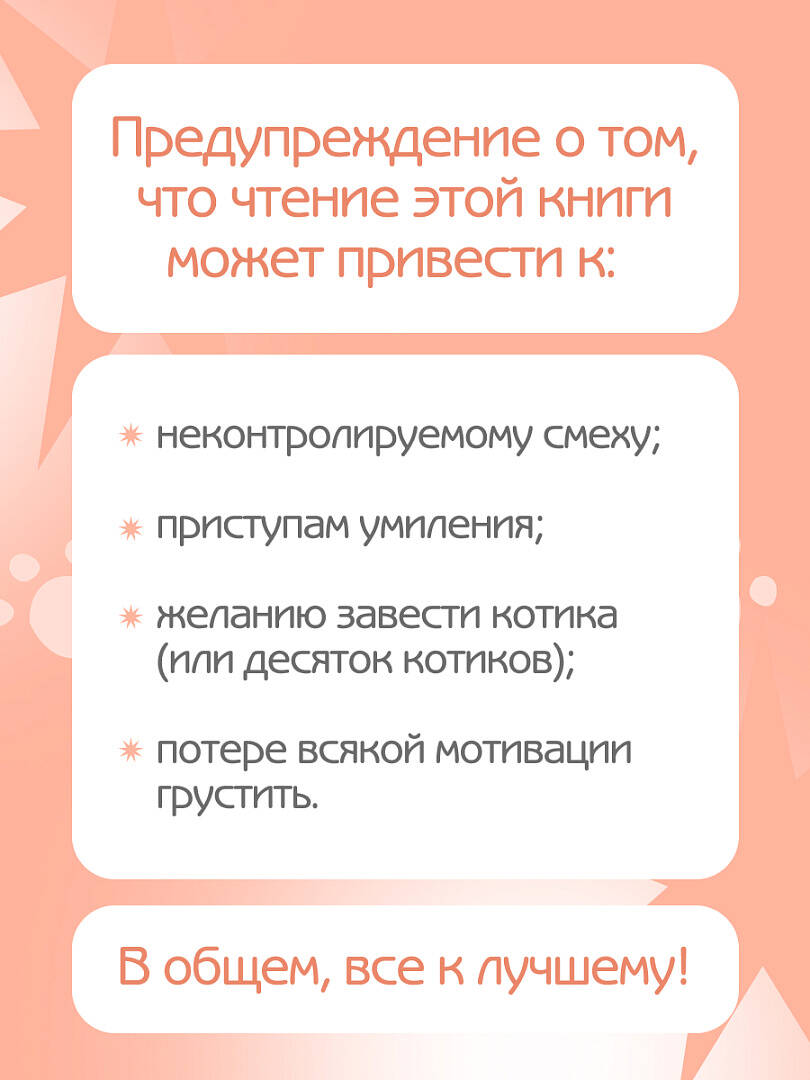 Книга для заМУРчательного настроения. Что может быть милее котиков? Ничего! Представьте, что вы попали в кошачью Вселенную - теплую и уютную, где всегда можно сладко выспаться, вкусно поесть и немного пошалить - устроить качели на шторах или ночной тыгыдык. Не жизнь, а сказка! Именно в такую сказку попадает читатель этой книги. Его ждет захватывающее путешествие к глубинам своего «Я». Истории о смысле жизни, о люби, о счастье, о вдохновении и волшебных котах подскажут верное решение в трудной ситуации, помогут разобраться в чувствах и научат мудрой кошачьей философии жизни - держать хвост трубой, что бы ни случилось!| Издательство | Издательство "АСТ" |