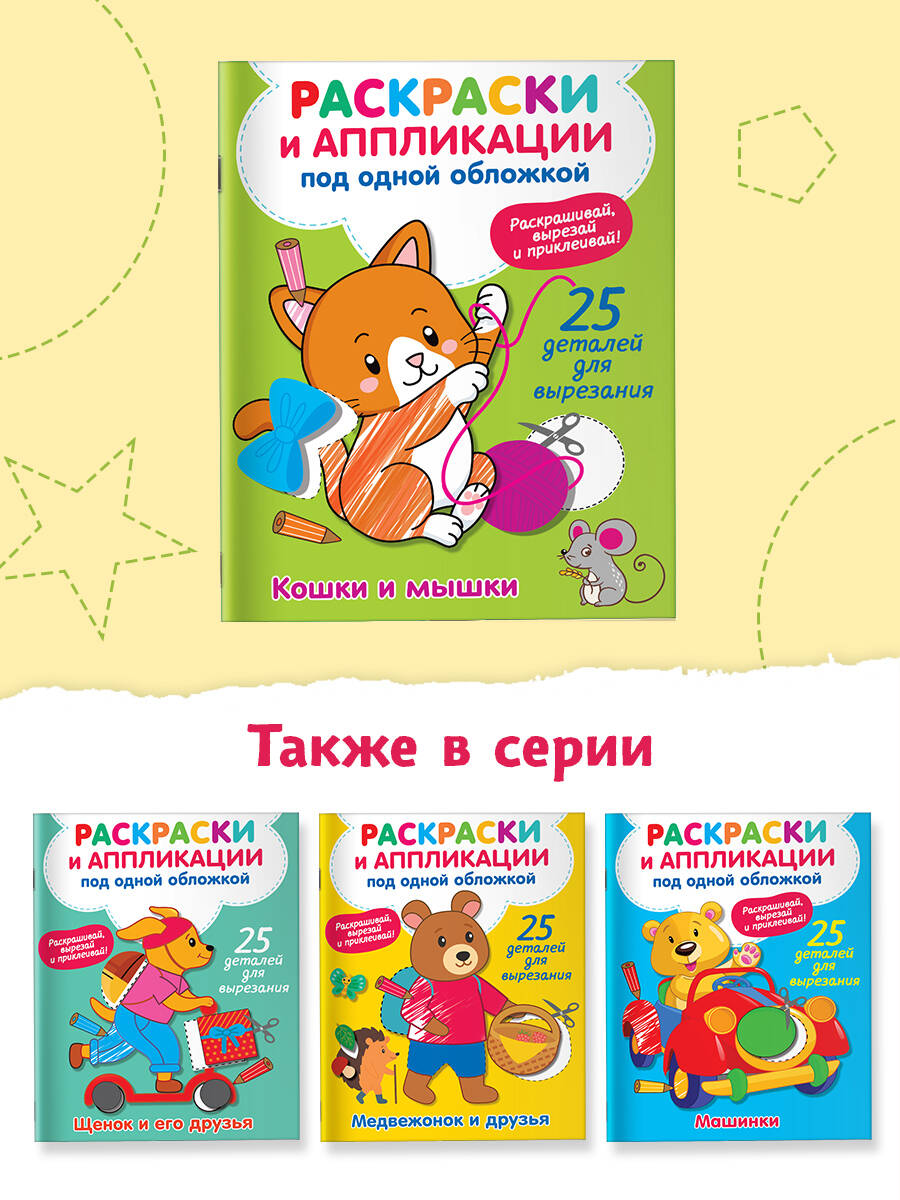 «Кошки и мышки» - это книжка-раскраска с аппликациями для малышей. Работа с бумагой развивает мелкую моторику, пространственное мышление и творческие способности, ребёнок получает представление о размере, цвете и форме предметов, учится быть внимательным и аккуратным, а также это отличная подготовка руки к письму. Готовую аппликацию можно аккуратно вырезать и поместить в рамку на память о первых творческих успехах юного художника.| Издательство | АСТ |